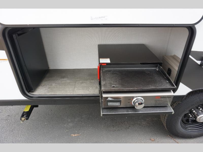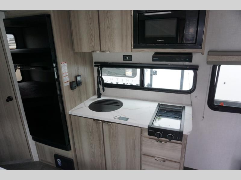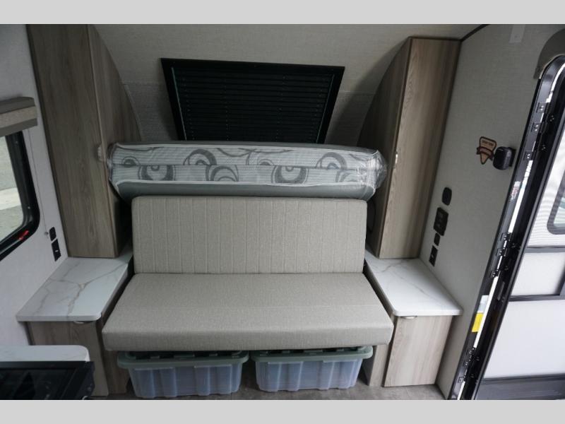 No need will go unmet with this travel trailer! It features a front Murphy bed that will double as seating and sleeping space, double-size bunk beds with storage, plus a booth dinette. You can prepare your best home cooked meals indoors with the two burner cooktop or head to the outside kitchen to fry up some burgers while breathing in some fresh air. You will also appreciate the outside shower and the front exterior full pass-through storage area for all your outdoor gear.