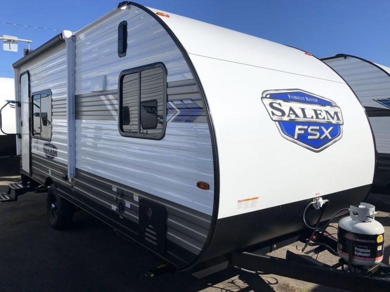 The Forest River Salem FSX travel trailers and toy hauler travel trailers are ultra comfortable and lightweight, perfect for first time or seasoned campers alike! You will love how easy it will be to relax with residential features that will make your space feel just like home, and the durable construction means you can enjoy your RV for years to come. There are a wide variety of floorplans to choose from, including couple's trailers, bunk models, and toy haulers, all with full bath and kitchen amenities and plenty of storage for all your gear!