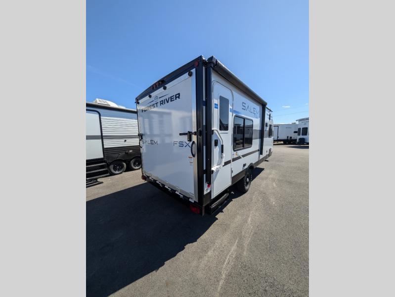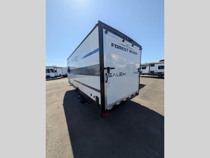 The Forest River Salem FSX travel trailers and toy hauler travel trailers are ultra comfortable and lightweight, perfect for first time or seasoned campers alike! You will love how easy it will be to relax with residential features that will make your space feel just like home, and the durable construction means you can enjoy your RV for years to come. There are a wide variety of floorplans to choose from, including couple's trailers, bunk models, and toy haulers, all with full bath and kitchen amenities and plenty of storage for all your gear!