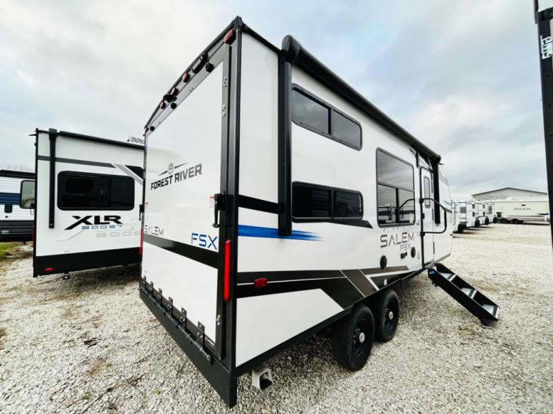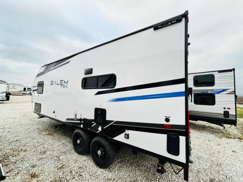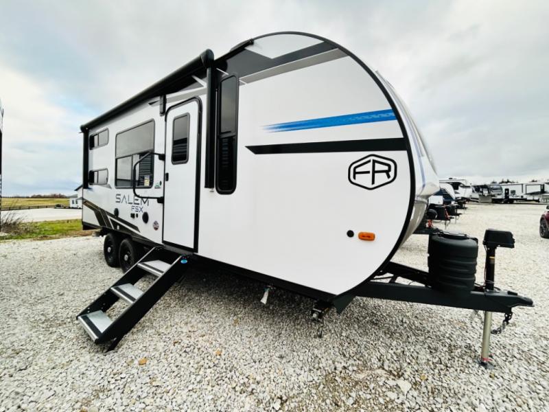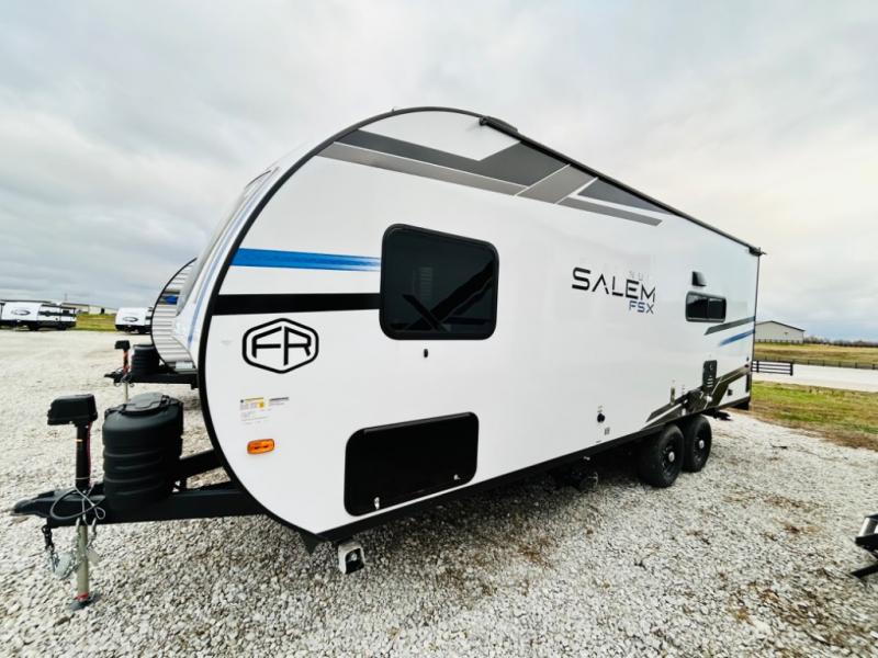 The Forest River Salem FSX travel trailers and toy hauler travel trailers are ultra comfortable and lightweight, perfect for first time or seasoned campers alike! You will love how easy it will be to relax with residential features that will make your space feel just like home, and the durable construction means you can enjoy your RV for years to come. There are a wide variety of floorplans to choose from, including couple's trailers, bunk models, and toy haulers, all with full bath and kitchen amenities and plenty of storage for all your gear!