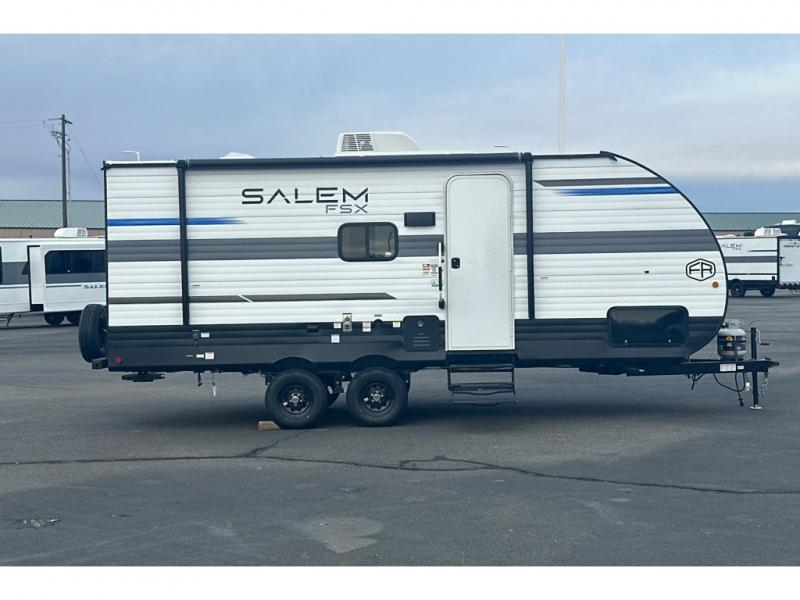 The Forest River Salem FSX travel trailers and toy hauler travel trailers are ultra comfortable and lightweight, perfect for first time or seasoned campers alike! You will love how easy it will be to relax with residential features that will make your space feel just like home, and the durable construction means you can enjoy your RV for years to come. There are a wide variety of floorplans to choose from, including couple's trailers, bunk models, and toy haulers, all with full bath and kitchen amenities and plenty of storage for all your gear!
