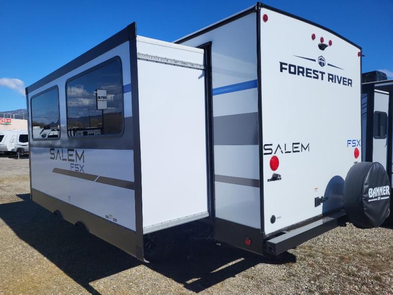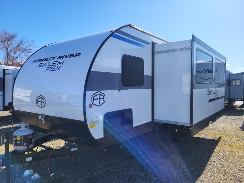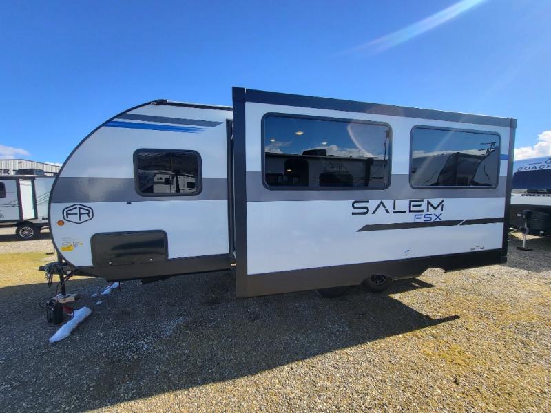 The Forest River Salem FSX travel trailers and toy hauler travel trailers are ultra comfortable and lightweight, perfect for first time or seasoned campers alike! You will love how easy it will be to relax with residential features that will make your space feel just like home, and the durable construction means you can enjoy your RV for years to come. There are a wide variety of floorplans to choose from, including couple's trailers, bunk models, and toy haulers, all with full bath and kitchen amenities and plenty of storage for all your gear!