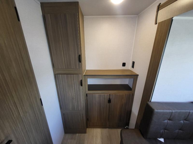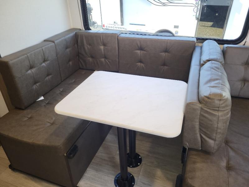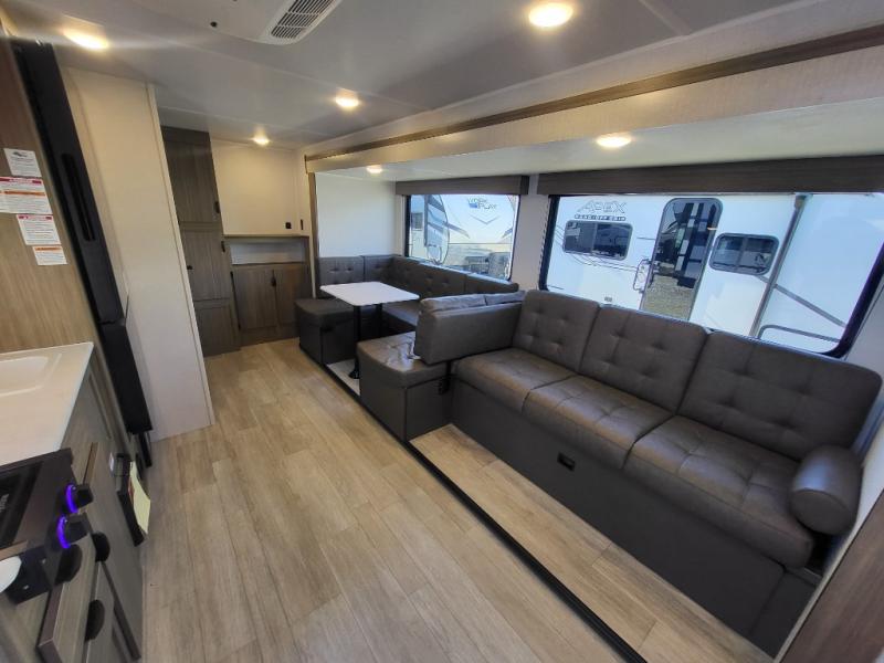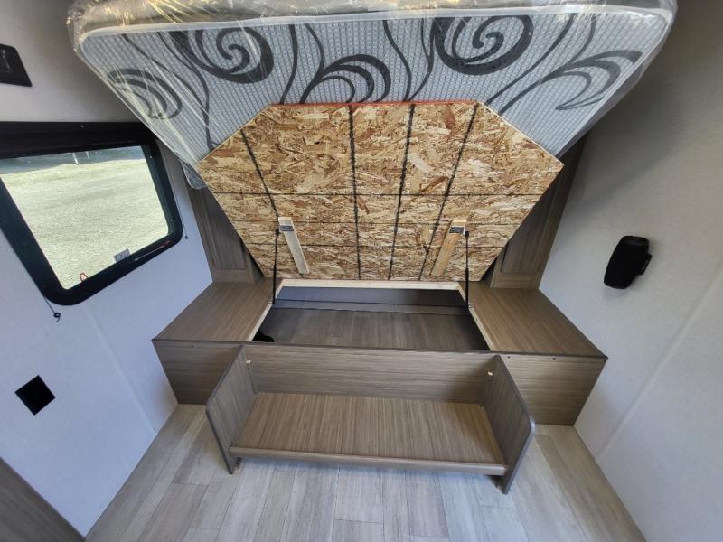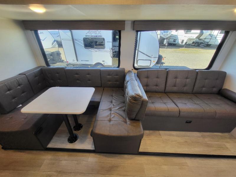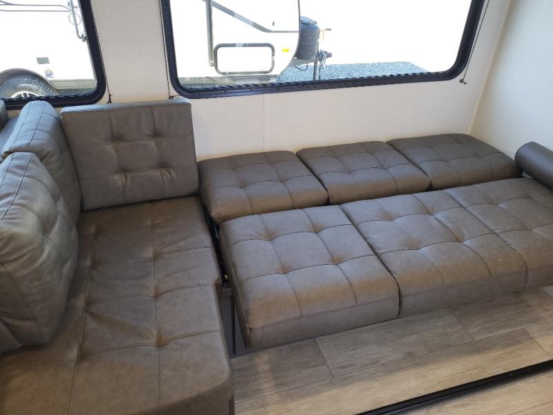 If space is what you're looking for in a lightweight trailer, this is the one! There is a large slide out in the main living area that includes the U-shaped dinette and Versa lounge, and there is even storage access under the sofa so everything has its place. A front queen bed will provide a great night's rest, and since this unit is carpet free, it will be so easy to clean up each morning!