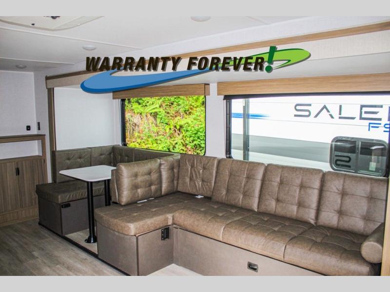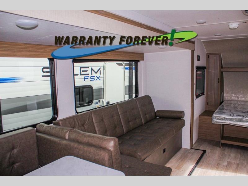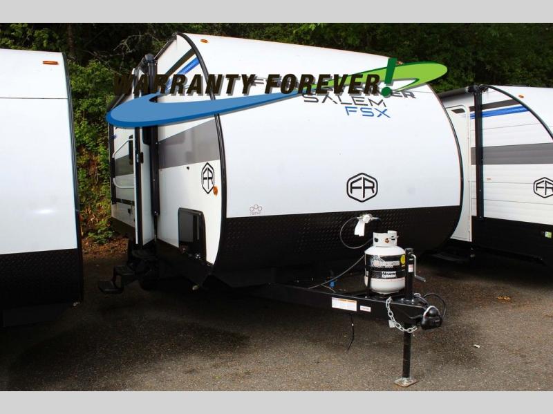 The Forest River Salem FSX travel trailers and toy hauler travel trailers are ultra comfortable and lightweight, perfect for first time or seasoned campers alike! You will love how easy it will be to relax with residential features that will make your space feel just like home, and the durable construction means you can enjoy your RV for years to come. There are a wide variety of floorplans to choose from, including couple's trailers, bunk models, and toy haulers, all with full bath and kitchen amenities and plenty of storage for all your gear!