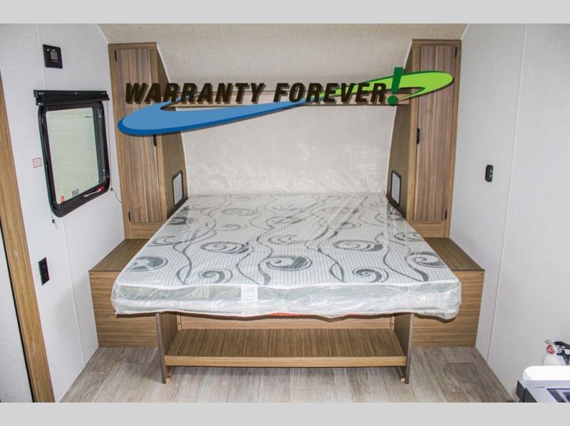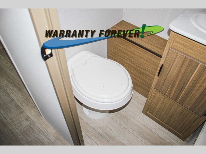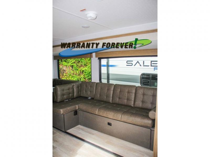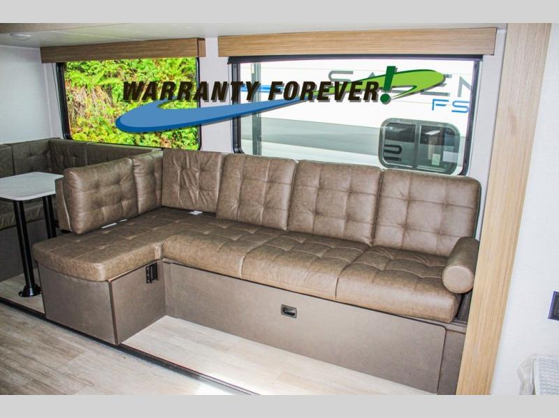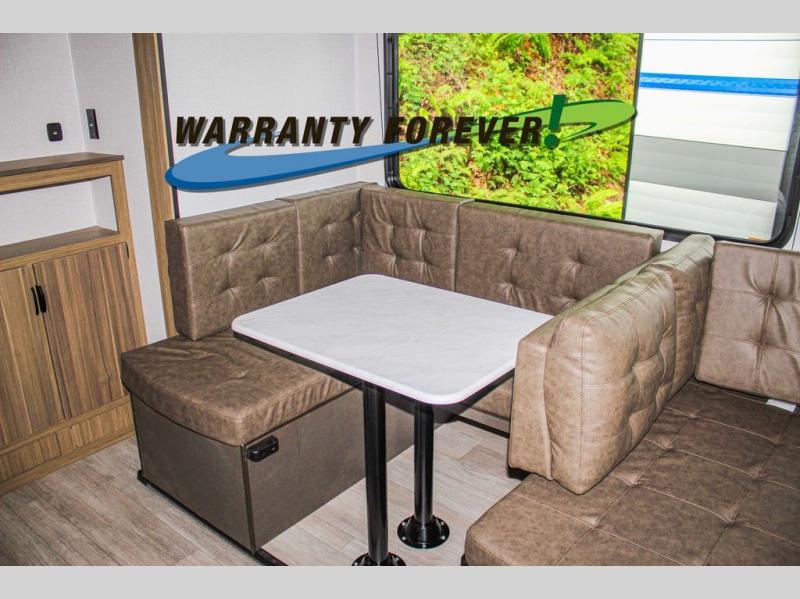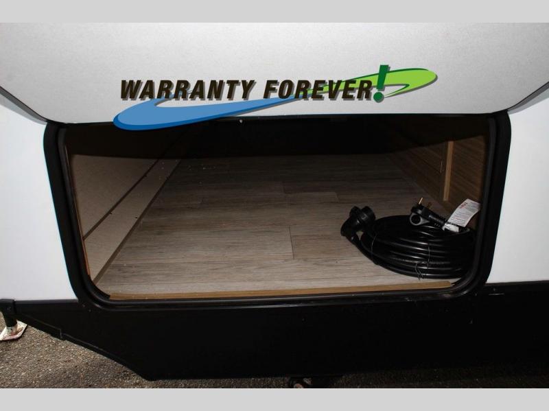 If space is what you're looking for in a lightweight trailer, this is the one! There is a large slide out in the main living area that includes the U-shaped dinette and Versa lounge, and there is even storage access under the sofa so everything has its place. A front queen bed will provide a great night's rest, and since this unit is carpet free, it will be so easy to clean up each morning!