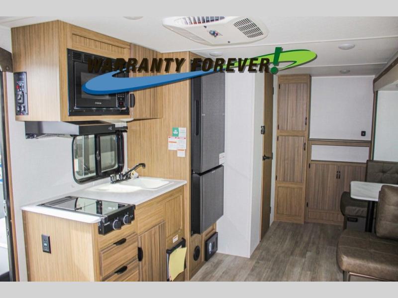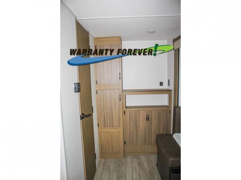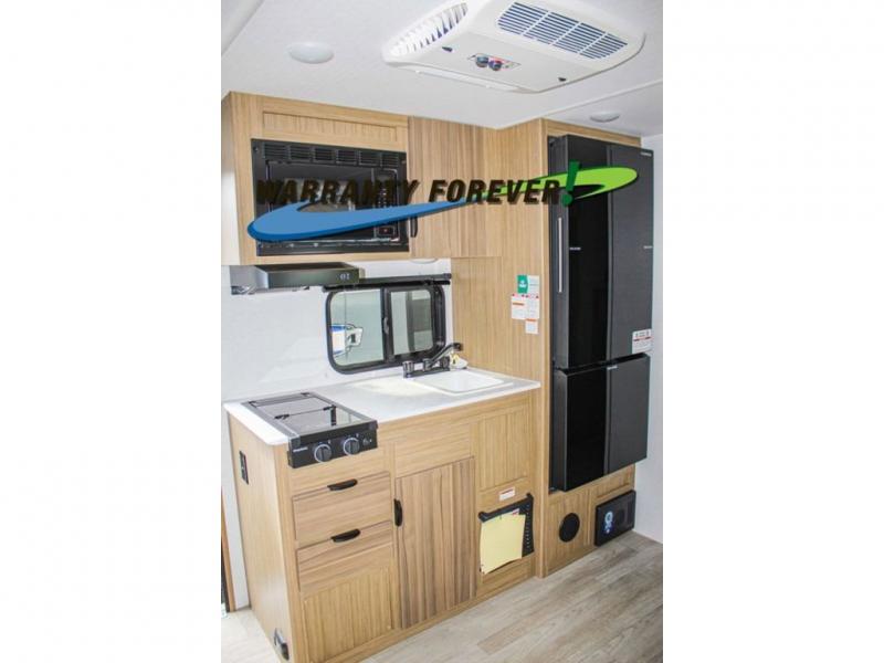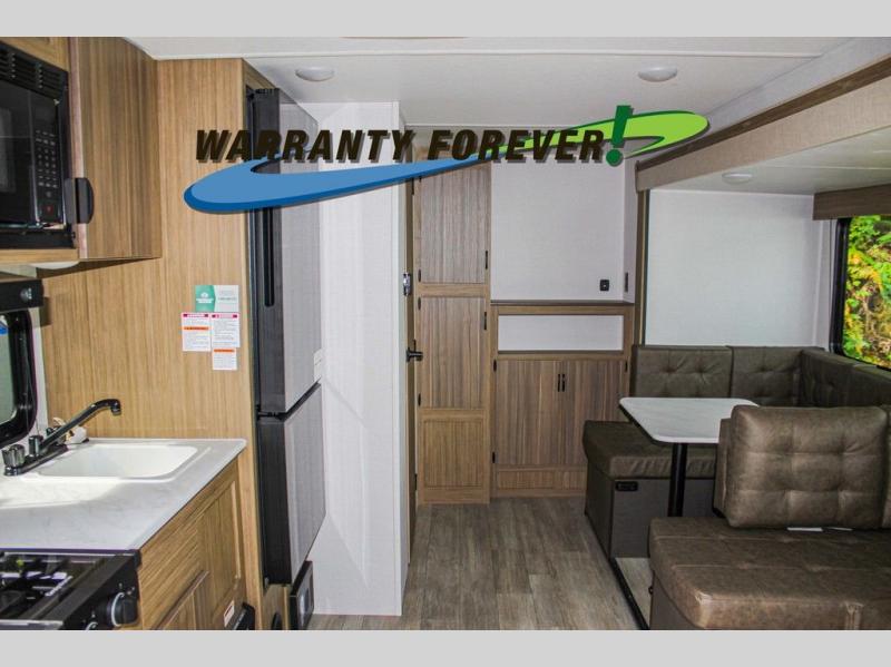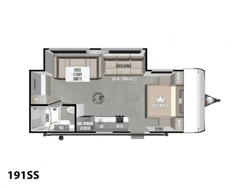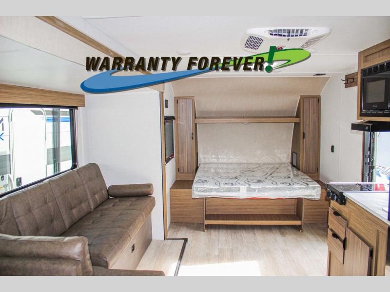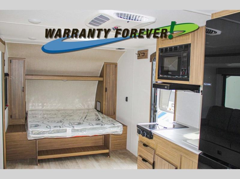 If space is what you're looking for in a lightweight trailer, this is the one! There is a large slide out in the main living area that includes the U-shaped dinette and Versa lounge, and there is even storage access under the sofa so everything has its place. A front queen bed will provide a great night's rest, and since this unit is carpet free, it will be so easy to clean up each morning!