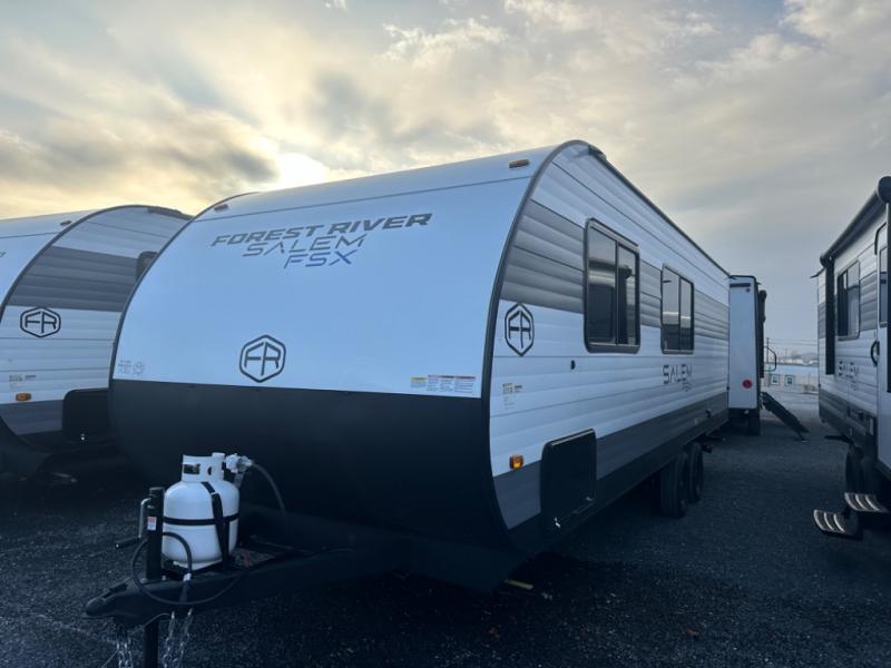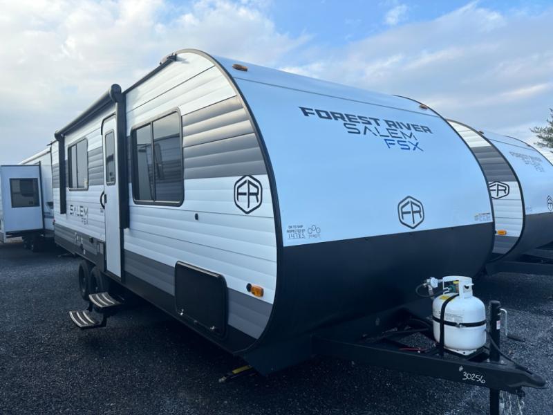 The Forest River Salem FSX travel trailers and toy hauler travel trailers are ultra comfortable and lightweight, perfect for first time or seasoned campers alike! You will love how easy it will be to relax with residential features that will make your space feel just like home, and the durable construction means you can enjoy your RV for years to come. There are a wide variety of floorplans to choose from, including couple's trailers, bunk models, and toy haulers, all with full bath and kitchen amenities and plenty of storage for all your gear!