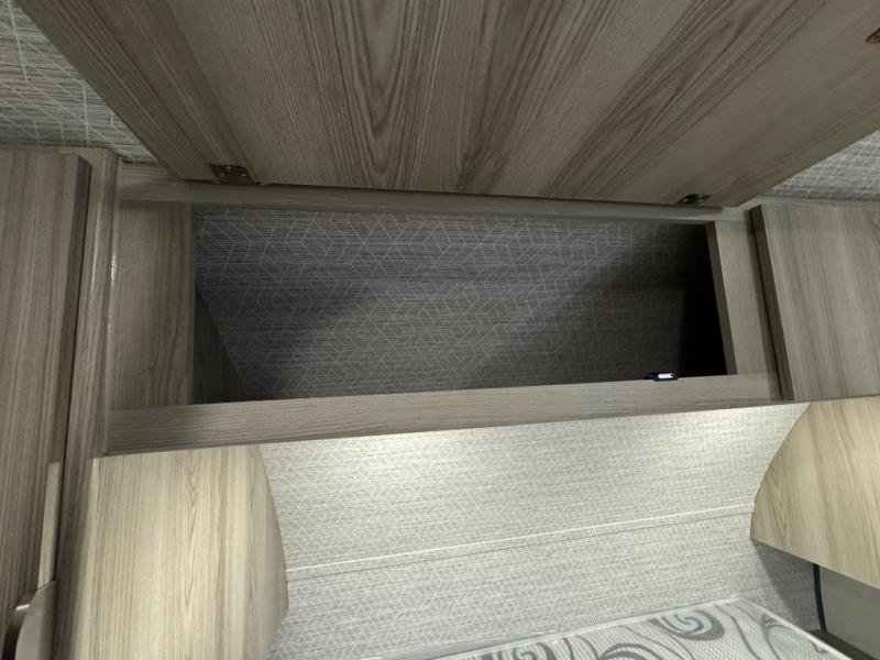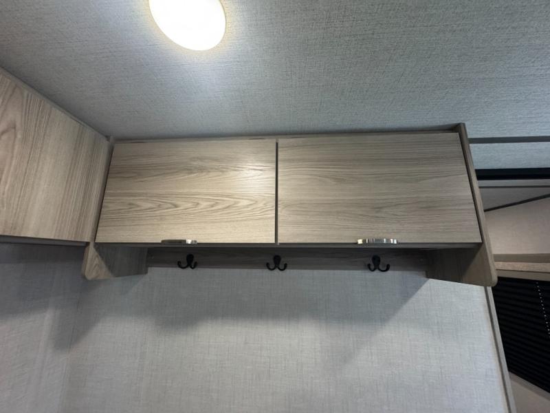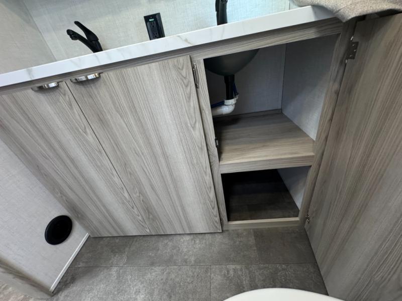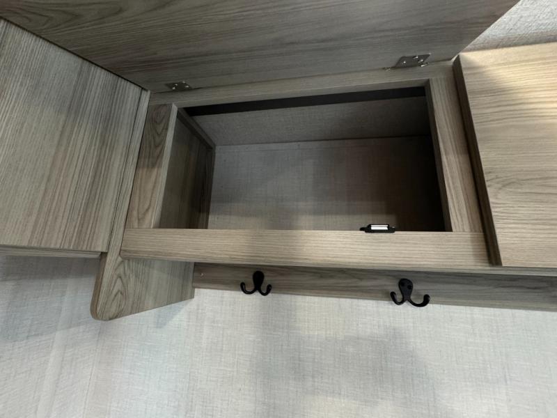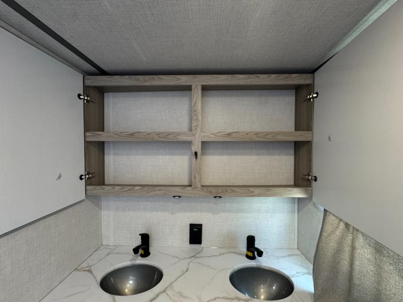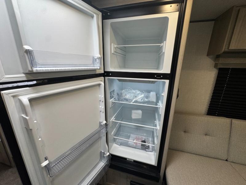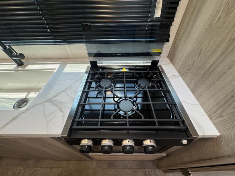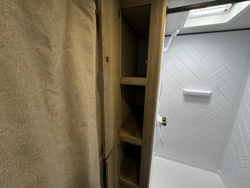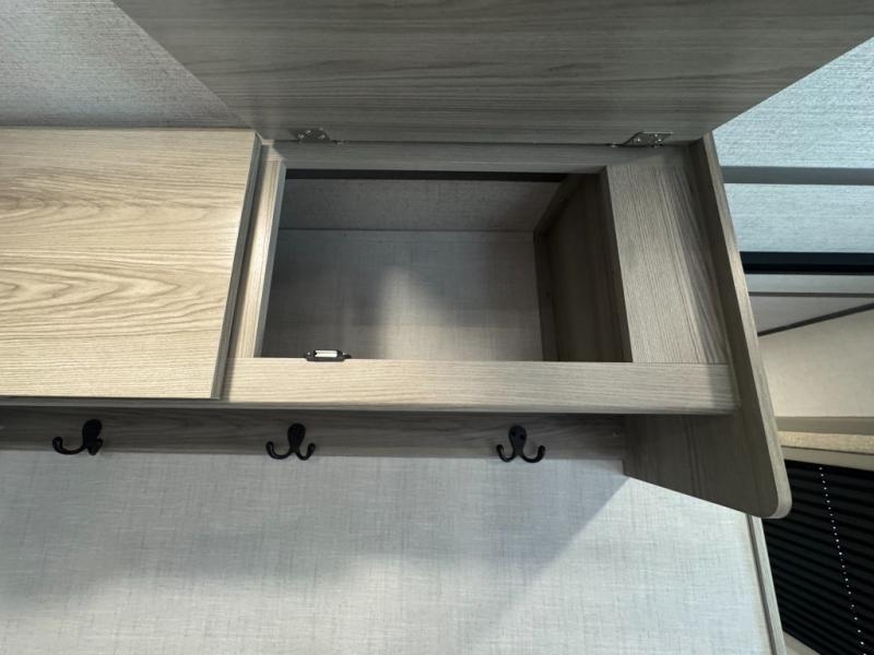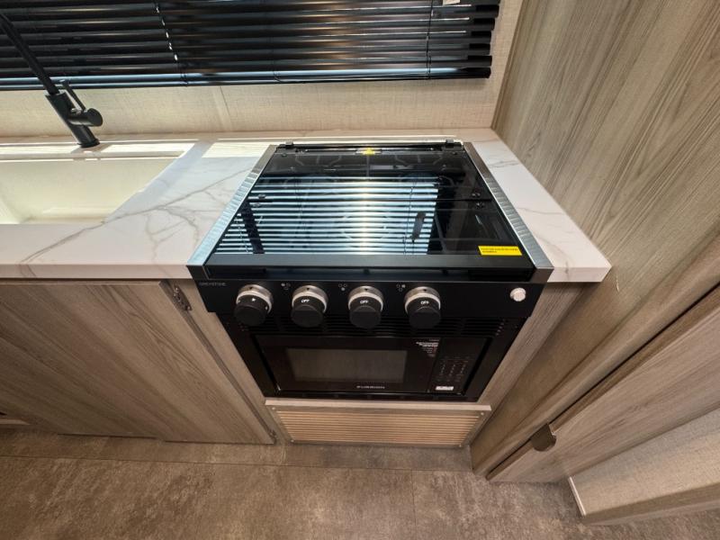 Camping is made easy in this travel trailer with at-home comforts! You'll have the front private bedroom with a king bed all to yourselves, and there are dual bedroom wardrobes to keep your space neat and clean. Any additional guests can sleep on the super lounge with a removable table. You will appreciate the full rear bath complete with a linen closet and dual bath sinks so you both can get ready for bed at once. And a full kitchen lets you whip up your best meals!