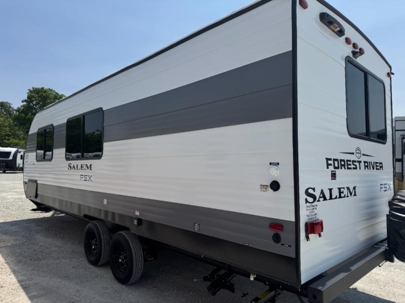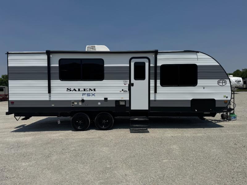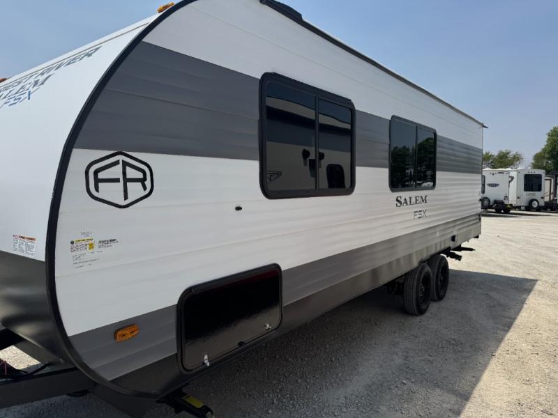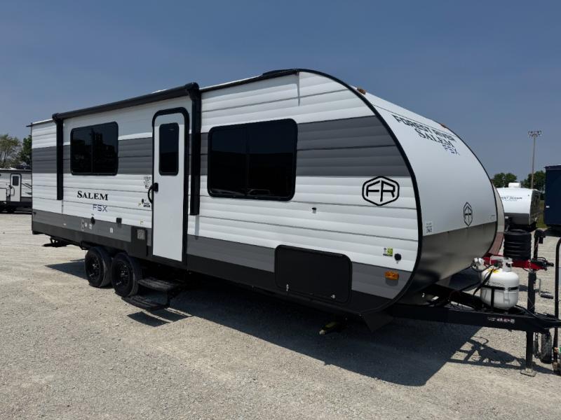 The Forest River Salem FSX travel trailers and toy hauler travel trailers are ultra comfortable and lightweight, perfect for first time or seasoned campers alike! You will love how easy it will be to relax with residential features that will make your space feel just like home, and the durable construction means you can enjoy your RV for years to come. There are a wide variety of floorplans to choose from, including couple's trailers, bunk models, and toy haulers, all with full bath and kitchen amenities and plenty of storage for all your gear!