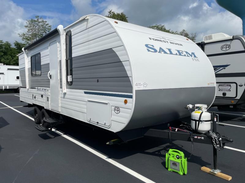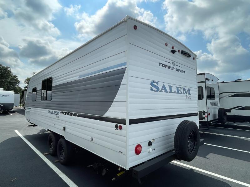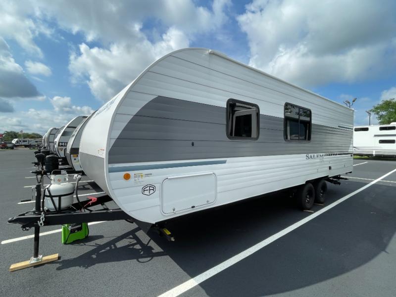 The Forest River Salem FSX travel trailers and toy hauler travel trailers are ultra comfortable and lightweight, perfect for first time or seasoned campers alike! You will love how easy it will be to relax with residential features that will make your space feel just like home, and the durable construction means you can enjoy your RV for years to come. There are a wide variety of floorplans to choose from, including couple's trailers, bunk models, and toy haulers, all with full bath and kitchen amenities and plenty of storage for all your gear!