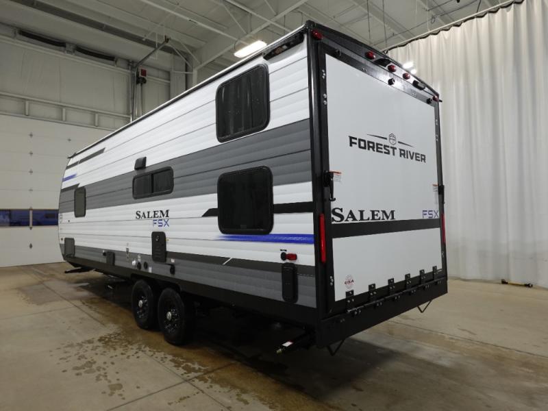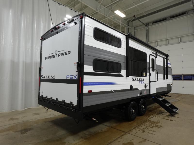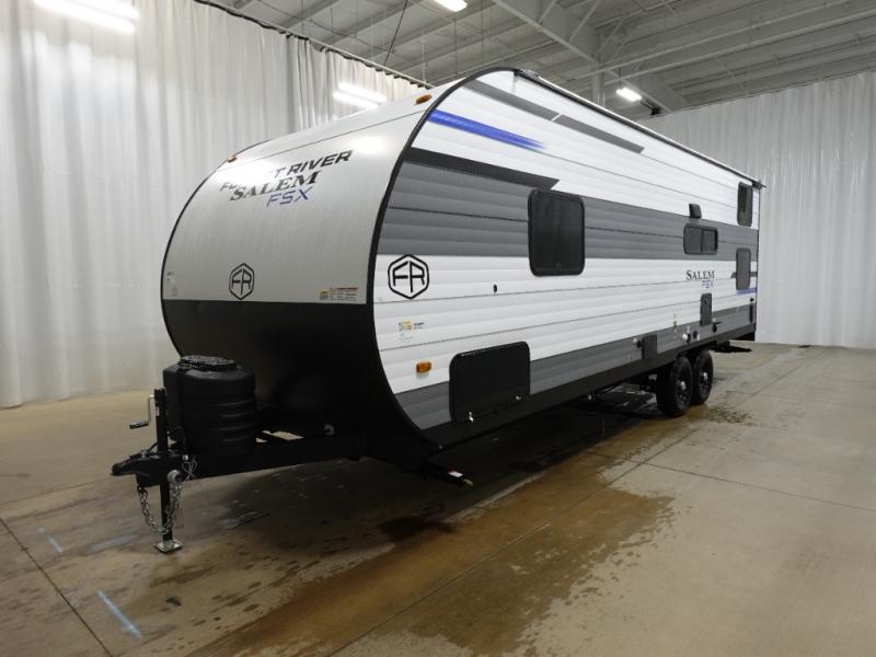 The Forest River Salem FSX travel trailers and toy hauler travel trailers are ultra comfortable and lightweight, perfect for first time or seasoned campers alike! You will love how easy it will be to relax with residential features that will make your space feel just like home, and the durable construction means you can enjoy your RV for years to come. There are a wide variety of floorplans to choose from, including couple's trailers, bunk models, and toy haulers, all with full bath and kitchen amenities and plenty of storage for all your gear!