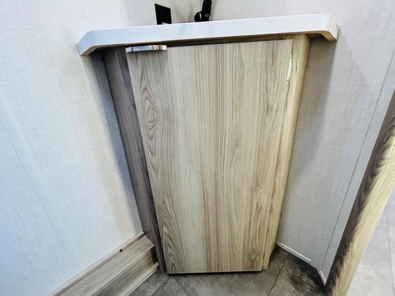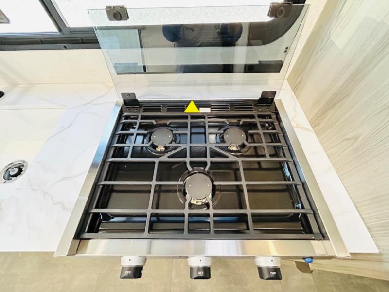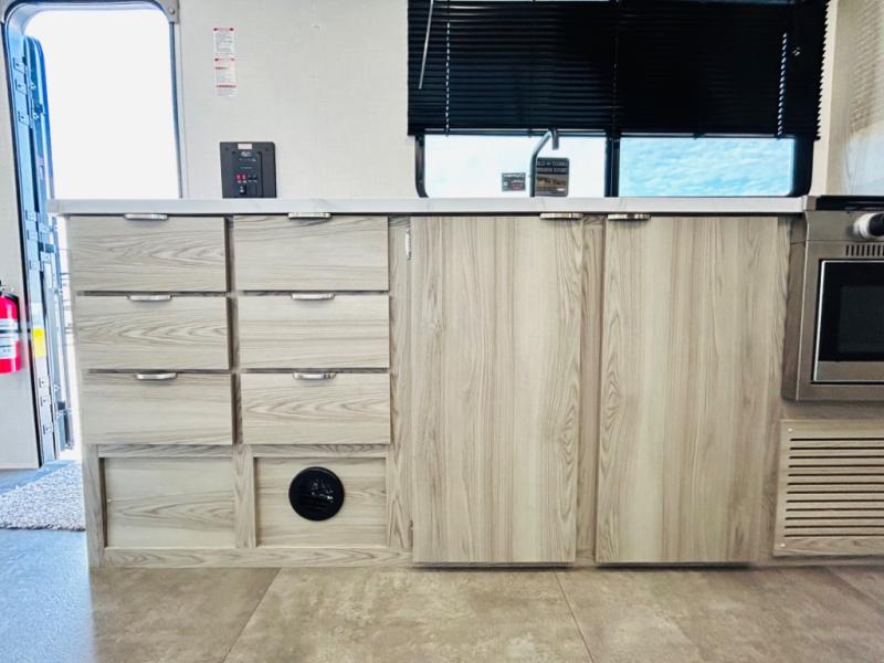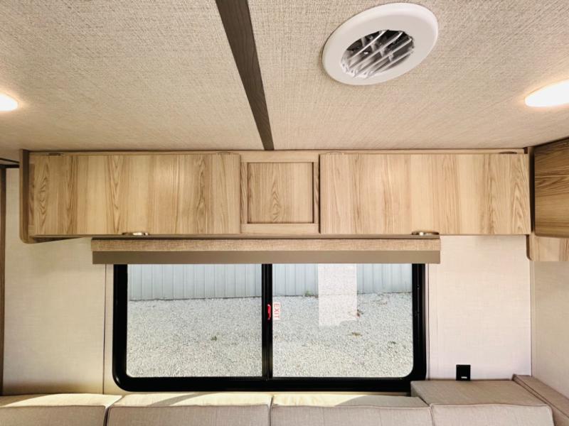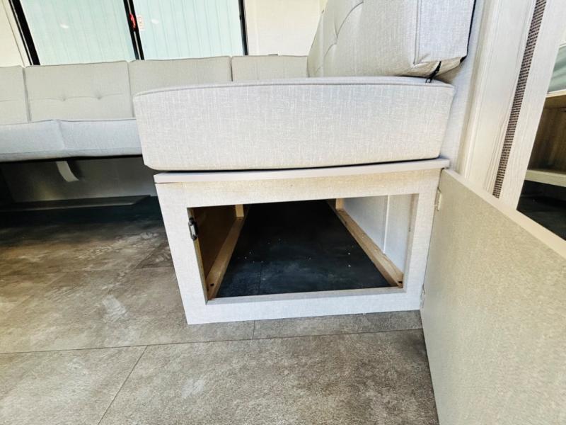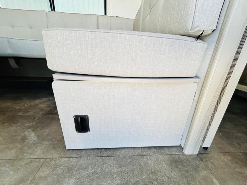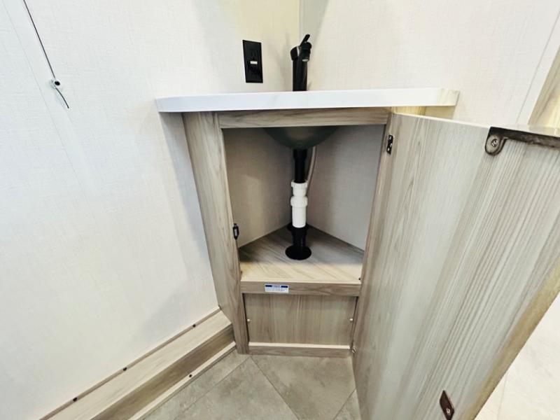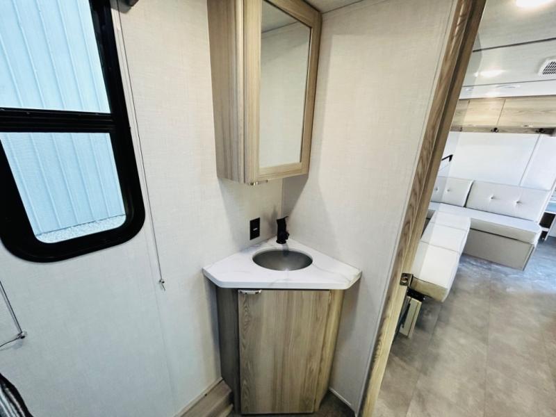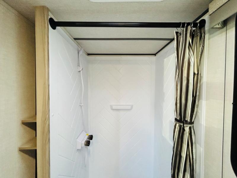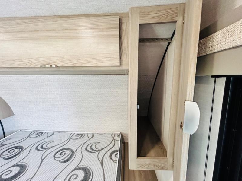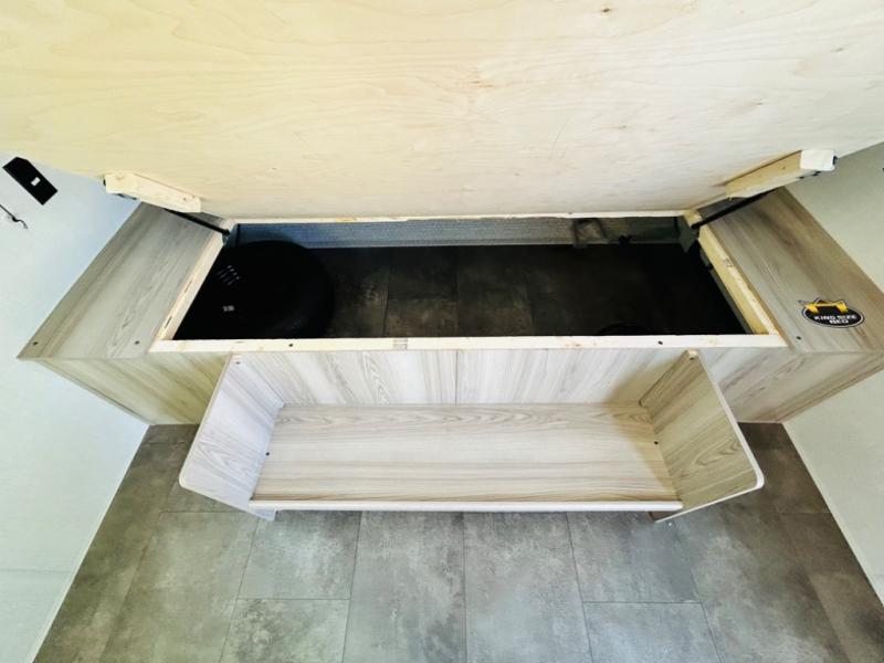 Camping is made easy in this travel trailer with more sleeping space and lots of comforts! The kids or your guests will enjoy the double-size bunks in the back, along with the full bath close by for easy nighttime use. You'll have the front private bedroom with a king bed all to yourselves, and there are dual bedroom wardrobes to keep your space neat and clean. Everyone can meet in the combined kitchen and living room to relax on the super U-lounge with a removable table while the chef of your group makes breakfast on the two burner cooktop. There is also a microwave oven for quick meals, plus a pantry and 4.5 cu. ft. refrigerator for food storage!