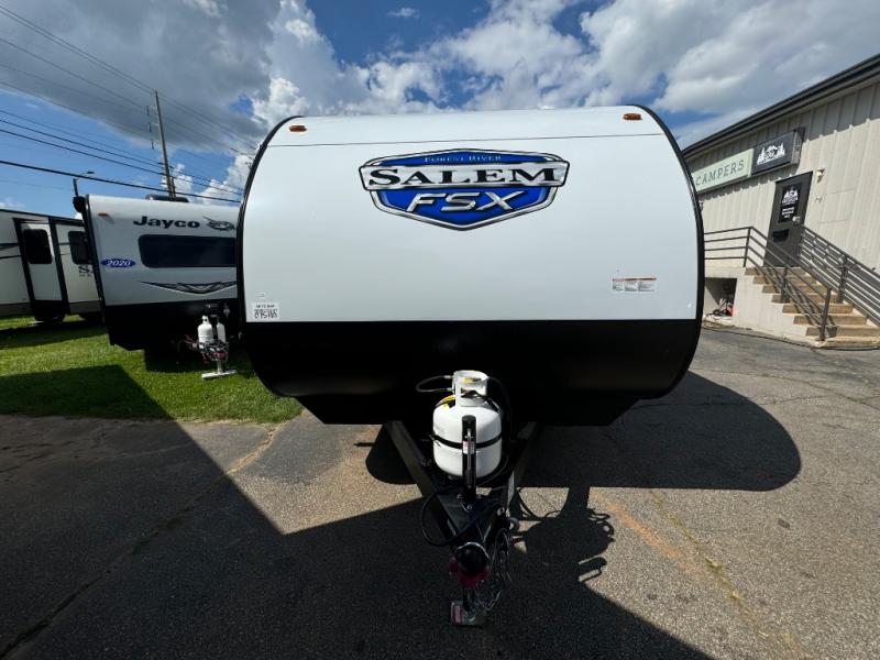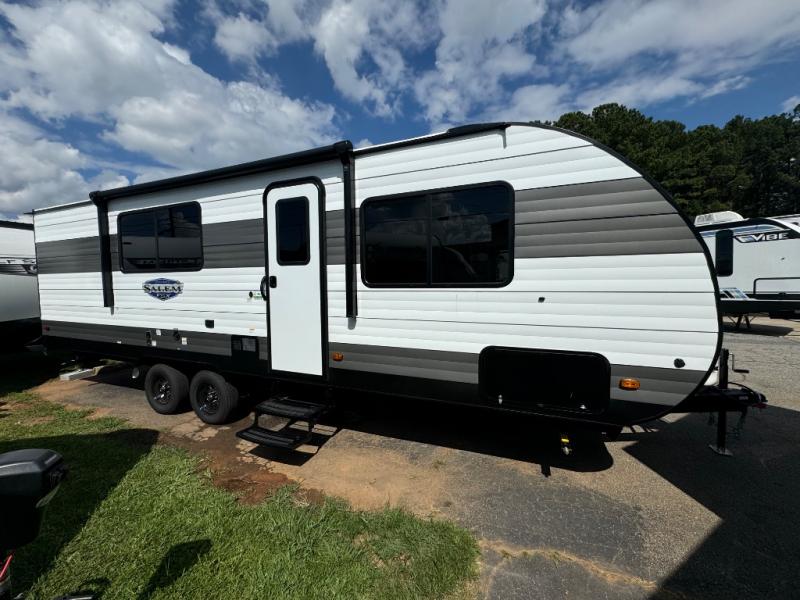 The Forest River Salem FSX travel trailers and toy hauler travel trailers are ultra comfortable and lightweight, perfect for first time or seasoned campers alike! You will love how easy it will be to relax with residential features that will make your space feel just like home, and the durable construction means you can enjoy your RV for years to come. There are a wide variety of floorplans to choose from, including couple's trailers, bunk models, and toy haulers, all with full bath and kitchen amenities and plenty of storage for all your gear!