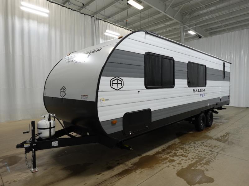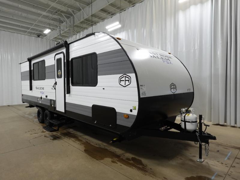 The Forest River Salem FSX travel trailers and toy hauler travel trailers are ultra comfortable and lightweight, perfect for first time or seasoned campers alike! You will love how easy it will be to relax with residential features that will make your space feel just like home, and the durable construction means you can enjoy your RV for years to come. There are a wide variety of floorplans to choose from, including couple's trailers, bunk models, and toy haulers, all with full bath and kitchen amenities and plenty of storage for all your gear!