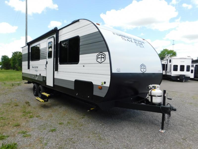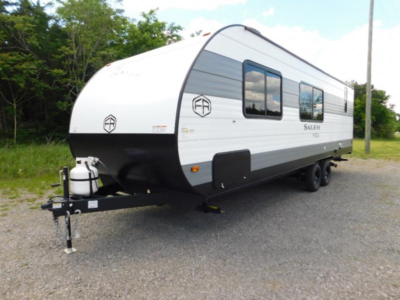 The Forest River Salem FSX travel trailers and toy hauler travel trailers are ultra comfortable and lightweight, perfect for first time or seasoned campers alike! You will love how easy it will be to relax with residential features that will make your space feel just like home, and the durable construction means you can enjoy your RV for years to come. There are a wide variety of floorplans to choose from, including couple's trailers, bunk models, and toy haulers, all with full bath and kitchen amenities and plenty of storage for all your gear!