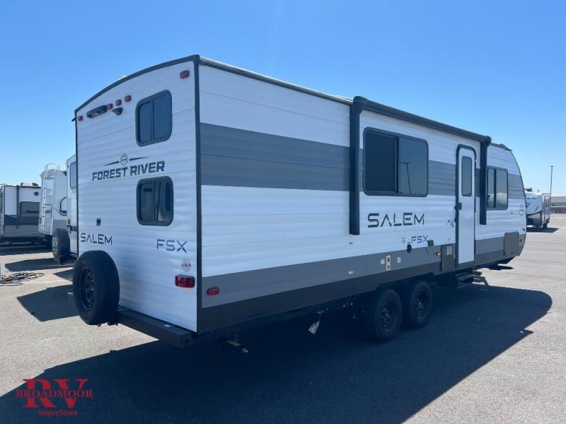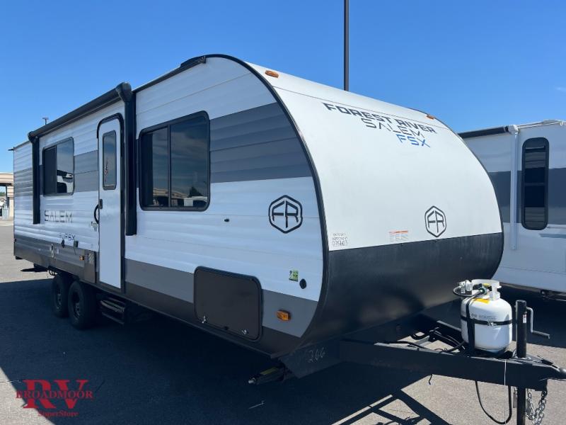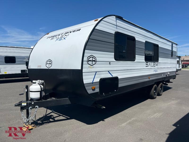 The Forest River Salem FSX travel trailers and toy hauler travel trailers are ultra comfortable and lightweight, perfect for first time or seasoned campers alike! You will love how easy it will be to relax with residential features that will make your space feel just like home, and the durable construction means you can enjoy your RV for years to come. There are a wide variety of floorplans to choose from, including couple's trailers, bunk models, and toy haulers, all with full bath and kitchen amenities and plenty of storage for all your gear!