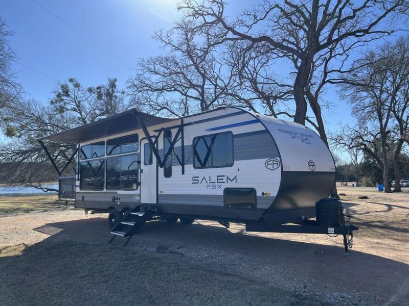 The Forest River Salem FSX travel trailers and toy hauler travel trailers are ultra comfortable and lightweight, perfect for first time or seasoned campers alike! You will love how easy it will be to relax with residential features that will make your space feel just like home, and the durable construction means you can enjoy your RV for years to come. There are a wide variety of floorplans to choose from, including couple's trailers, bunk models, and toy haulers, all with full bath and kitchen amenities and plenty of storage for all your gear!