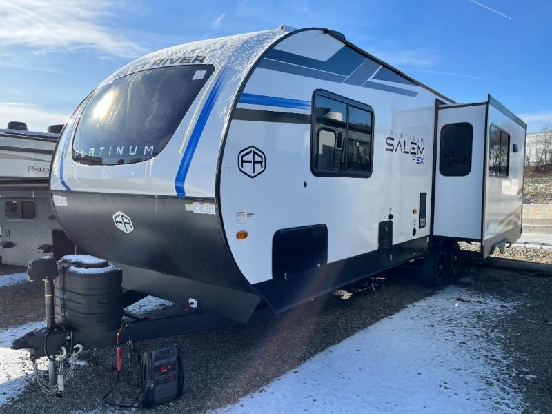 The Forest River Salem FSX travel trailers and toy hauler travel trailers are ultra comfortable and lightweight, perfect for first time or seasoned campers alike! You will love how easy it will be to relax with residential features that will make your space feel just like home, and the durable construction means you can enjoy your RV for years to come. There are a wide variety of floorplans to choose from, including couple's trailers, bunk models, and toy haulers, all with full bath and kitchen amenities and plenty of storage for all your gear!