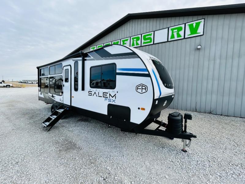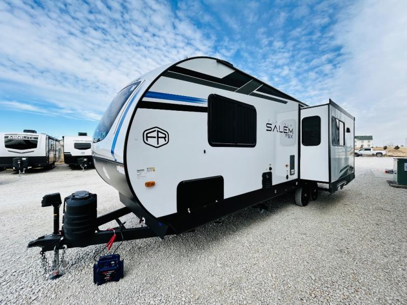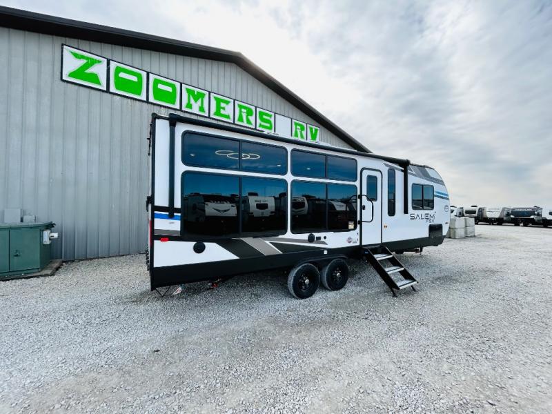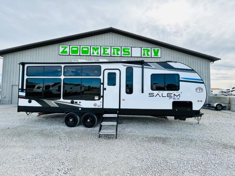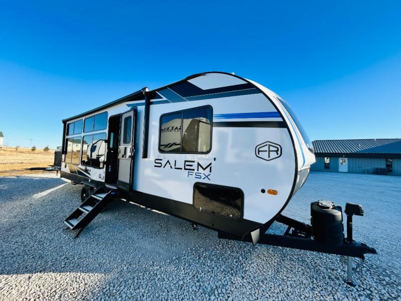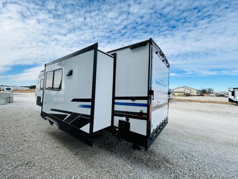 The Forest River Salem FSX travel trailers and toy hauler travel trailers are ultra comfortable and lightweight, perfect for first time or seasoned campers alike! You will love how easy it will be to relax with residential features that will make your space feel just like home, and the durable construction means you can enjoy your RV for years to come. There are a wide variety of floorplans to choose from, including couple's trailers, bunk models, and toy haulers, all with full bath and kitchen amenities and plenty of storage for all your gear!