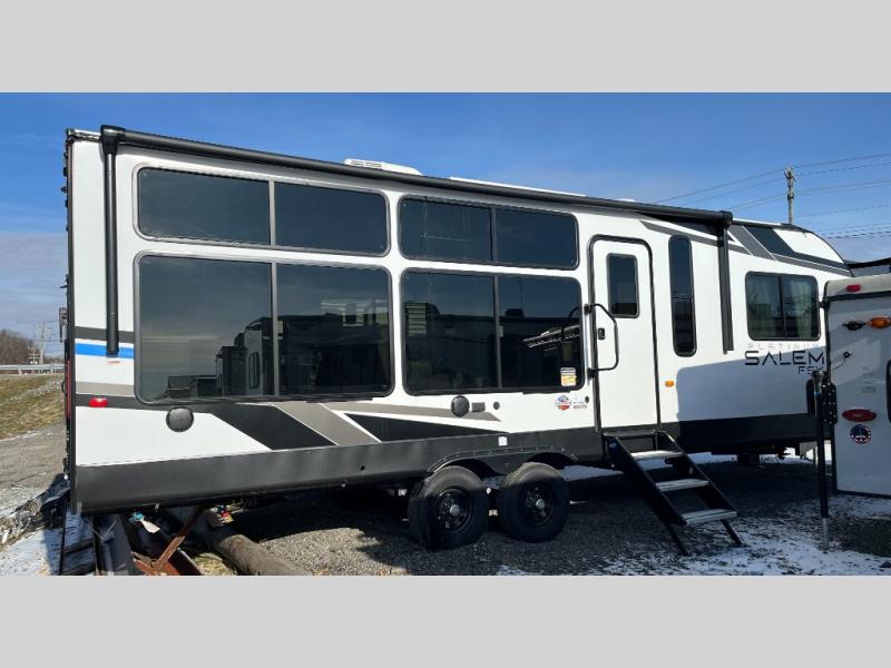The Forest River Salem FSX travel trailers and toy hauler travel trailers are ultra comfortable and lightweight, perfect for first time or seasoned campers alike! You will love how easy it will be to relax with residential features that will make your space feel just like home, and the durable construction means you can enjoy your RV for years to come. There are a wide variety of floorplans to choose from, including couple's trailers, bunk models, and toy haulers, all with full bath and kitchen amenities and plenty of storage for all your gear!
