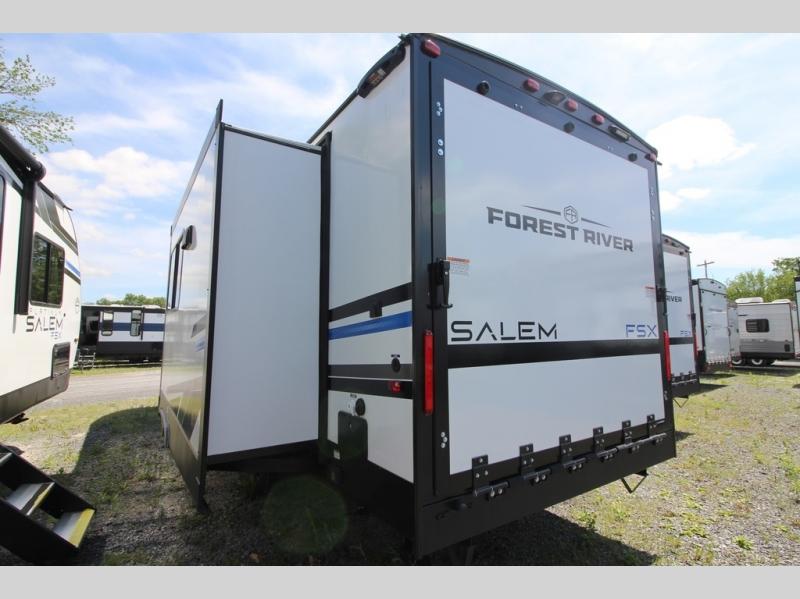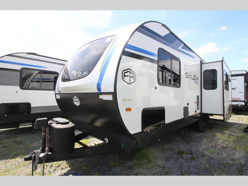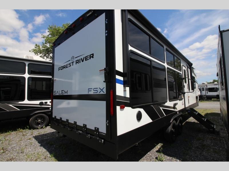The Forest River Salem FSX travel trailers and toy hauler travel trailers are ultra comfortable and lightweight, perfect for first time or seasoned campers alike! You will love how easy it will be to relax with residential features that will make your space feel just like home, and the durable construction means you can enjoy your RV for years to come. There are a wide variety of floorplans to choose from, including couple's trailers, bunk models, and toy haulers, all with full bath and kitchen amenities and plenty of storage for all your gear!
