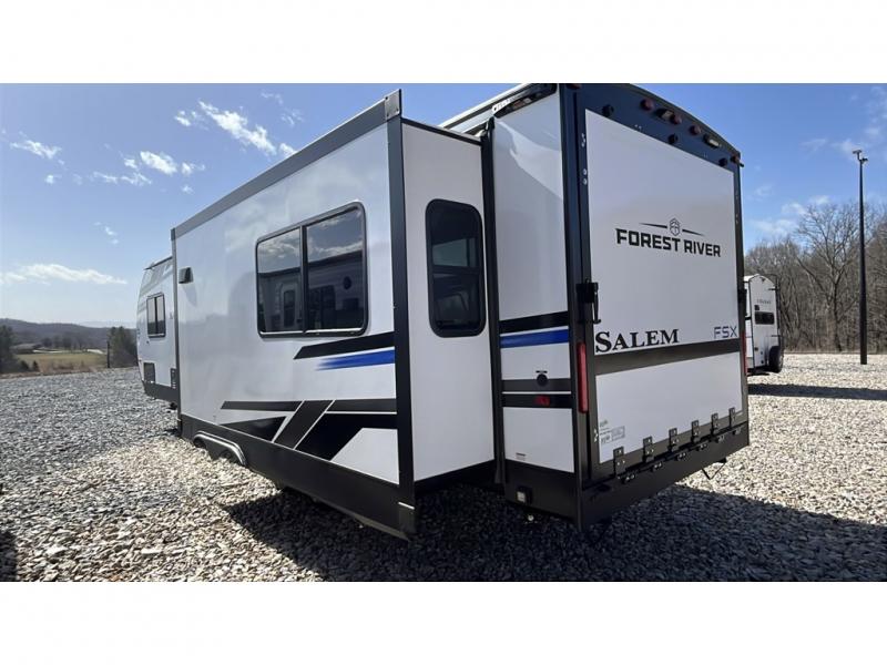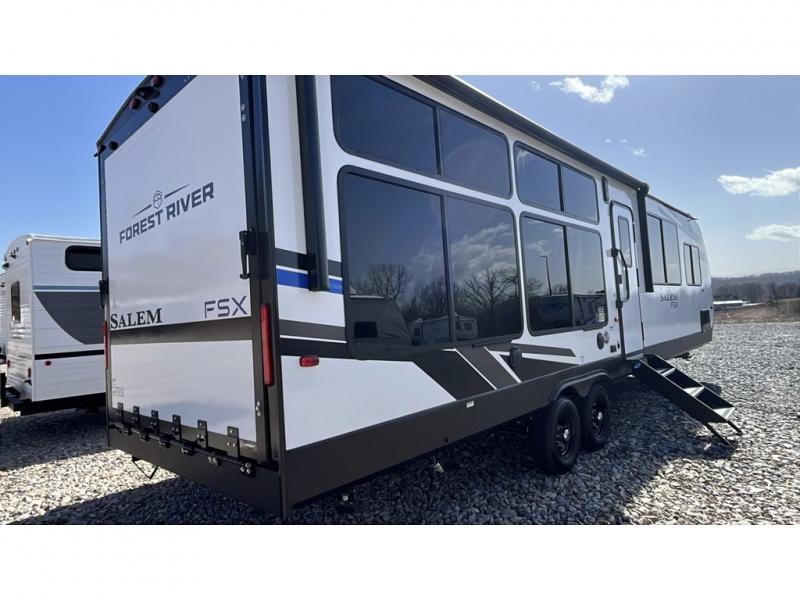 The Forest River Salem FSX travel trailers and toy hauler travel trailers are ultra comfortable and lightweight, perfect for first time or seasoned campers alike! You will love how easy it will be to relax with residential features that will make your space feel just like home, and the durable construction means you can enjoy your RV for years to come. There are a wide variety of floorplans to choose from, including couple's trailers, bunk models, and toy haulers, all with full bath and kitchen amenities and plenty of storage for all your gear!