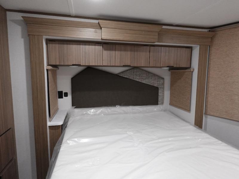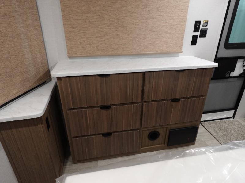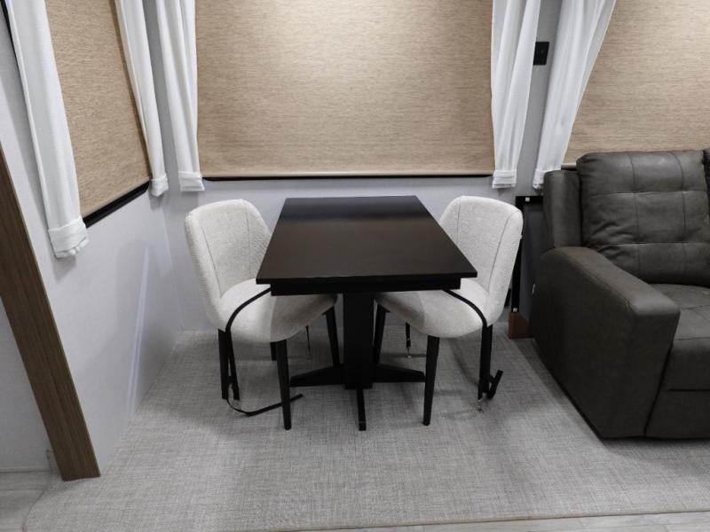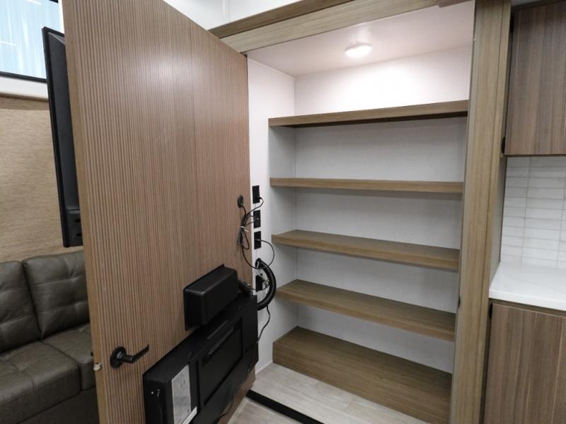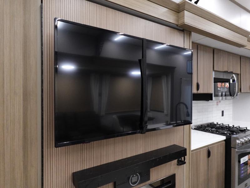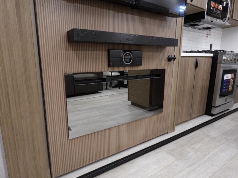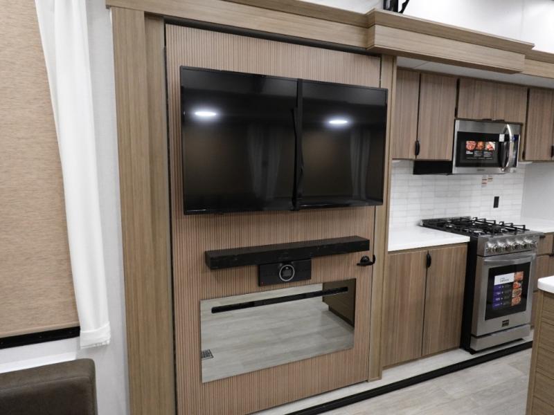 With any Salem Grand Villa destination trailer by Forest River, you can call home wherever you park it! There is a heated and enclosed Accessibelly for added protection in all seasons, LED "Blade Lighting" under the awning, Lippert On-The-Go ladder prep, plus many more exterior conveniences. Elegant curtain rods and curtains will have you feeling right at home, along with stainless steel kitchen appliances, stylish roller shades, and enhanced floating shelves for added storage. Each model includes a central vacuum with a sweep attachment to help keep your space tidy, a 60k on-demand tankless water heater for endless hot showers, a JBL 3-Zone media center, plus more.