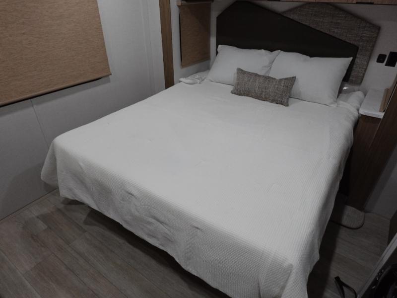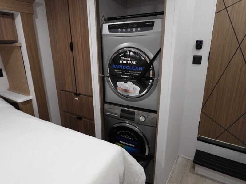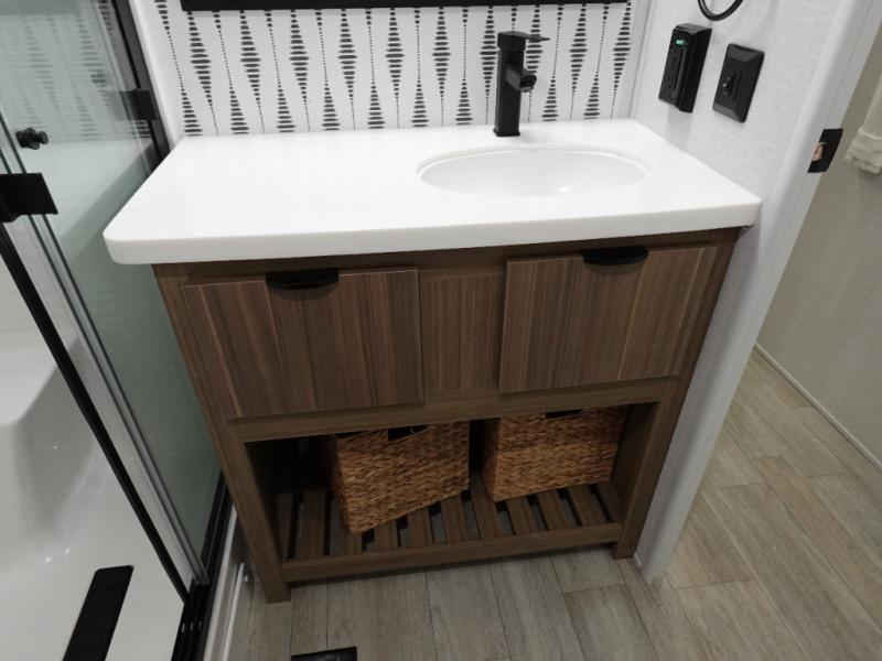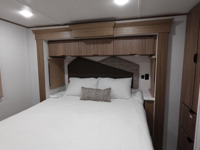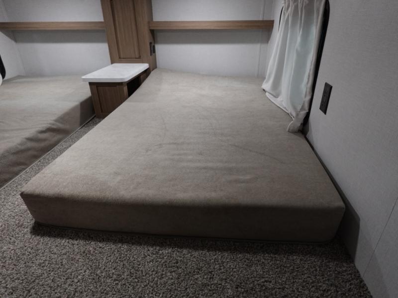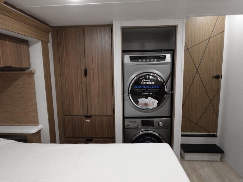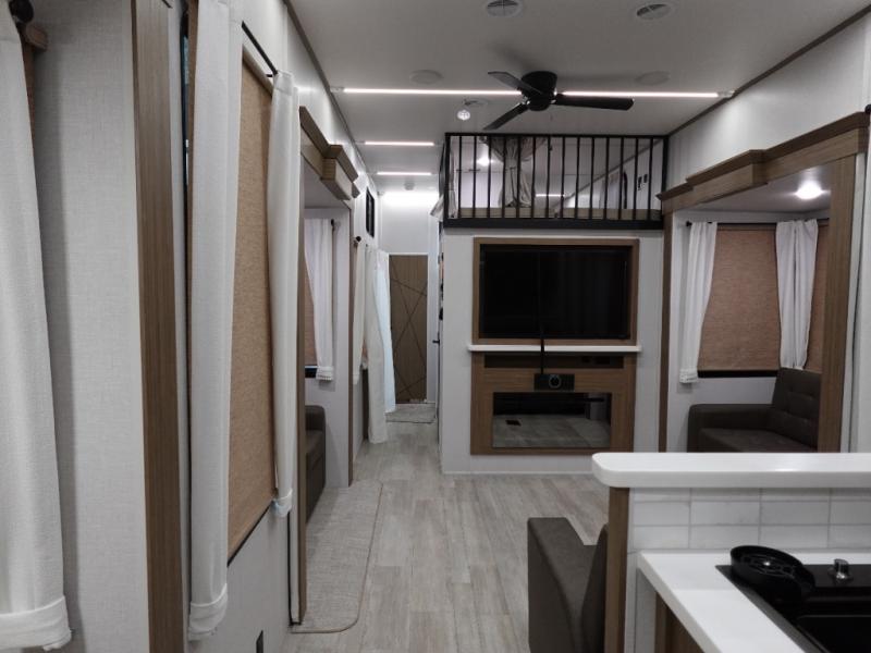 With any Salem Grand Villa destination trailer by Forest River, you can call home wherever you park it! There is a heated and enclosed Accessibelly for added protection in all seasons, LED "Blade Lighting" under the awning, Lippert On-The-Go ladder prep, plus many more exterior conveniences. Elegant curtain rods and curtains will have you feeling right at home, along with stainless steel kitchen appliances, stylish roller shades, and enhanced floating shelves for added storage. Each model includes a central vacuum with a sweep attachment to help keep your space tidy, a 60k on-demand tankless water heater for endless hot showers, a JBL 3-Zone media center, plus more.