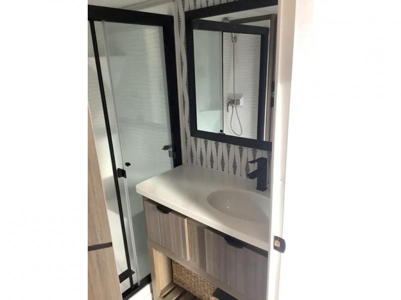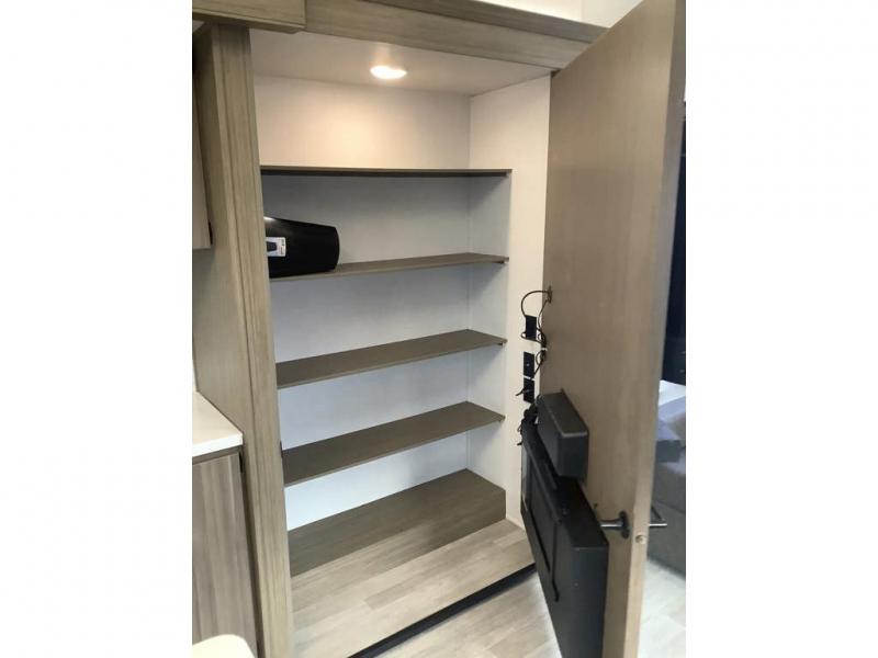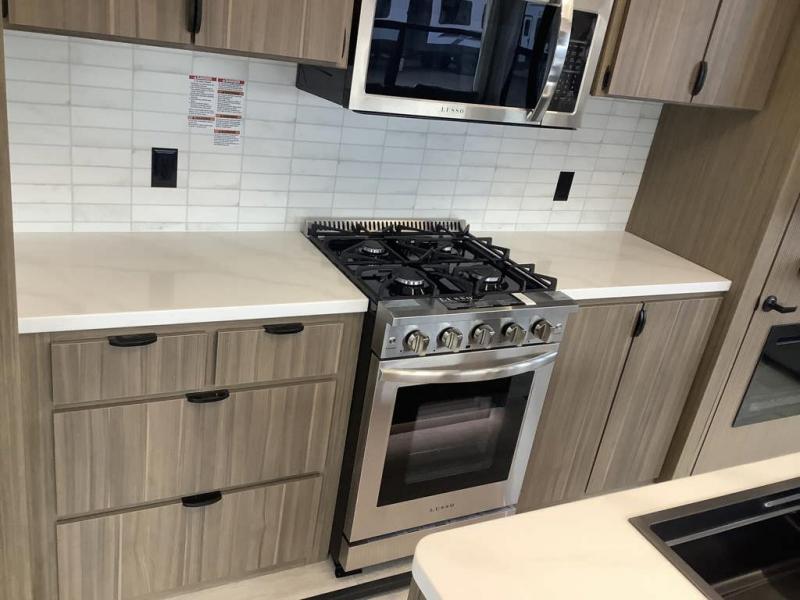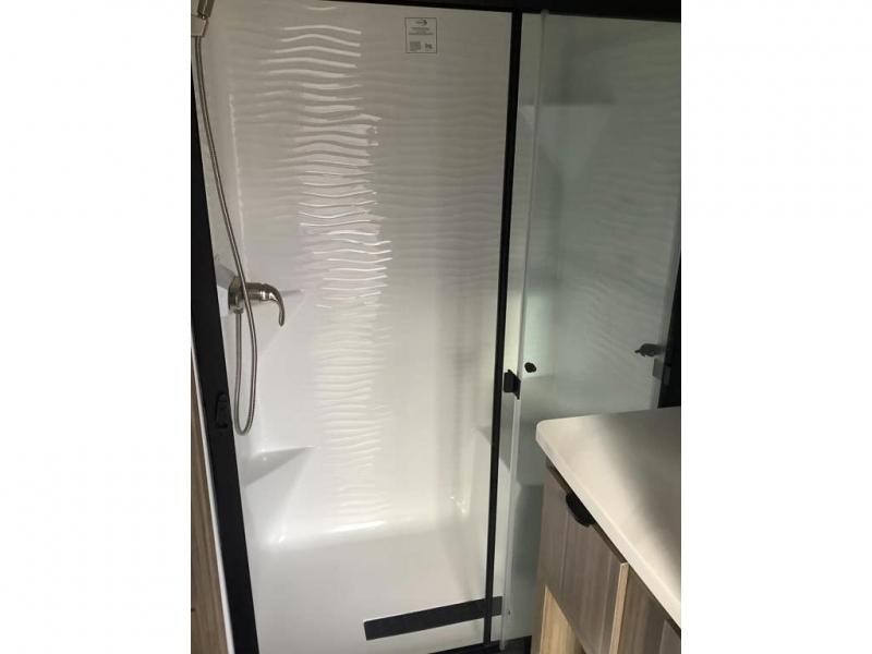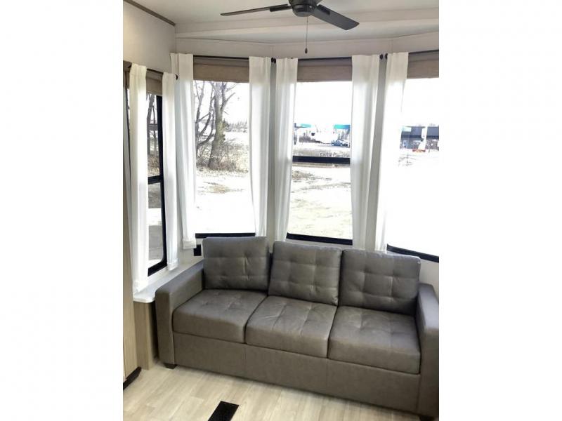 With any Salem Grand Villa destination trailer by Forest River, you can call home wherever you park it! There is a heated and enclosed Accessibelly for added protection in all seasons, LED "Blade Lighting" under the awning, Lippert On-The-Go ladder prep, plus many more exterior conveniences. Elegant curtain rods and curtains will have you feeling right at home, along with stainless steel kitchen appliances, stylish roller shades, and enhanced floating shelves for added storage. Each model includes a central vacuum with a sweep attachment to help keep your space tidy, a 60k on-demand tankless water heater for endless hot showers, a JBL 3-Zone media center, plus available options to further customize your trailer.