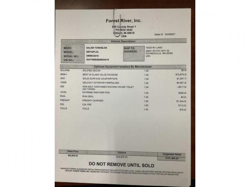 Forest River Salem Grand Villa destination trailer 42FLDL highlights: