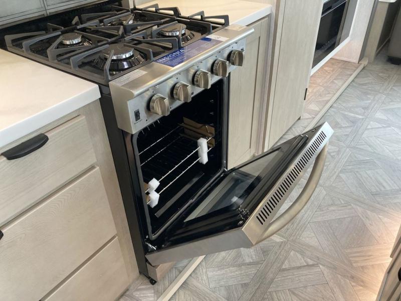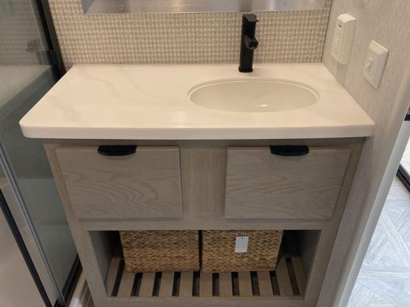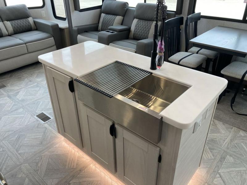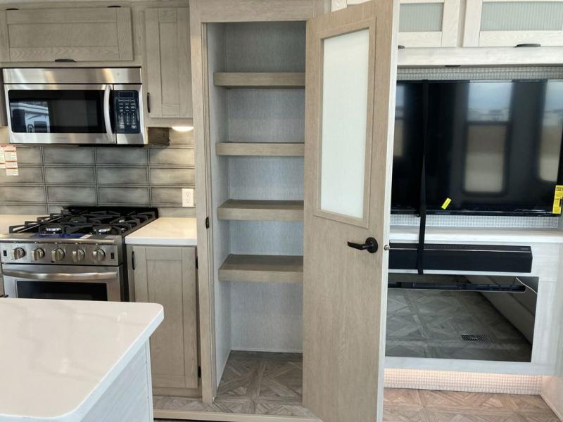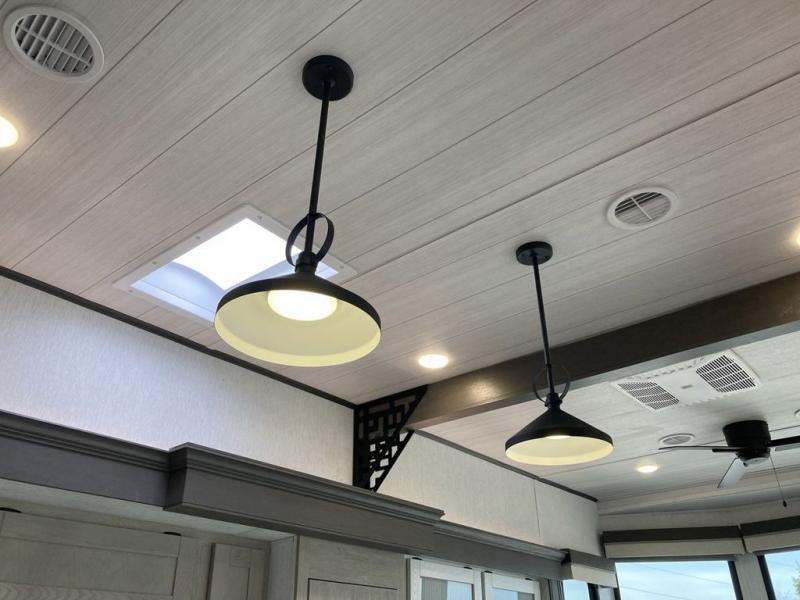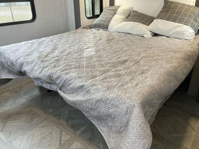With any Salem Grand Villa destination trailer by Forest River, you can call home wherever you park it! There is a heated and enclosed Accessibelly for added protection in all seasons, LED "Blade Lighting" under the awning, Lippert On-The-Go ladder prep, plus many more exterior conveniences. Elegant curtain rods and curtains will have you feeling right at home, along with stainless steel kitchen appliances, stylish roller shades, and enhanced floating shelves for added storage. Each model includes a central vacuum with a sweep attachment to help keep your space tidy, a 60k on-demand tankless water heater for endless hot showers, a JBL 3-Zone media center, plus available options to further customize your trailer.