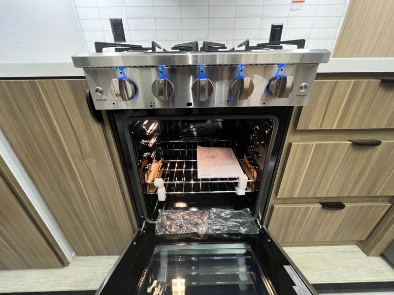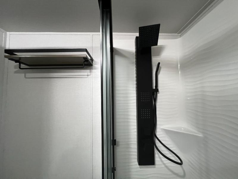 With any Salem Grand Villa destination trailer by Forest River, you can call home wherever you park it! There is a heated and enclosed Accessibelly for added protection in all seasons, LED "Blade Lighting" under the awning, Lippert On-The-Go ladder prep, plus many more exterior conveniences. Elegant curtain rods and curtains will have you feeling right at home, along with stainless steel kitchen appliances, stylish roller shades, and enhanced floating shelves for added storage. Each model includes a central vacuum with a sweep attachment to help keep your space tidy, a 60k on-demand tankless water heater for endless hot showers, a JBL 3-Zone media center, plus available options to further customize your trailer.