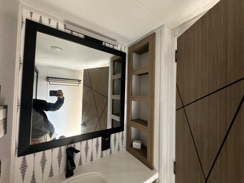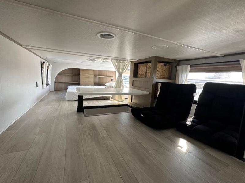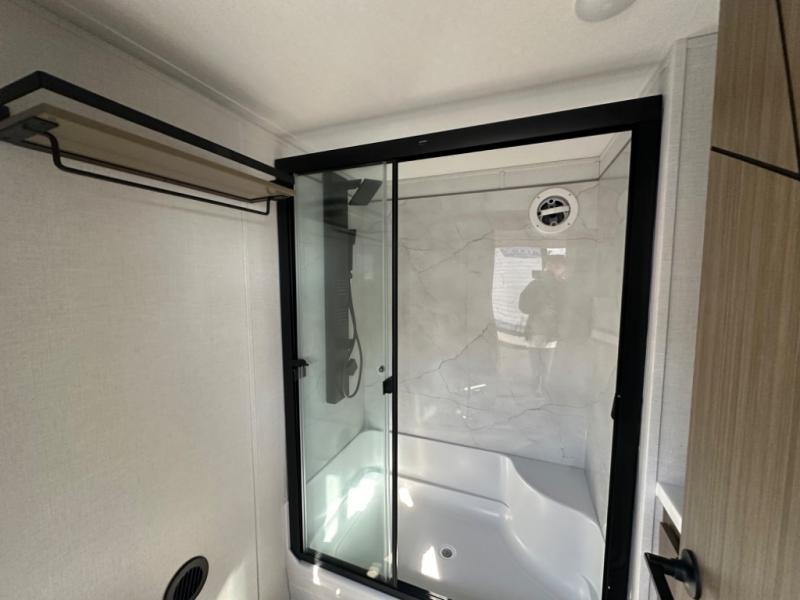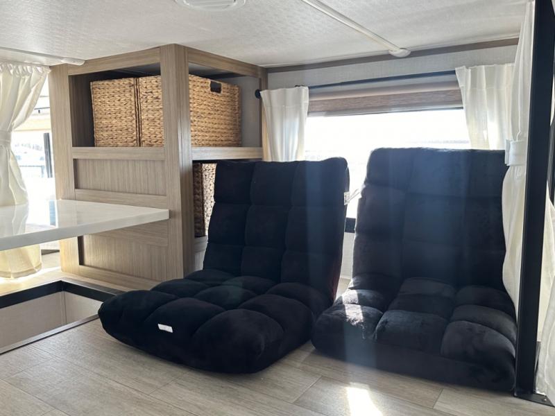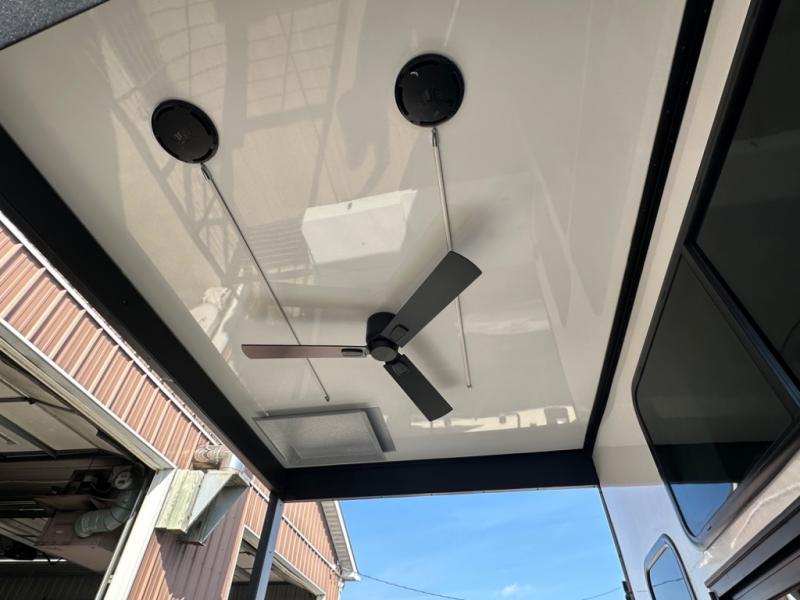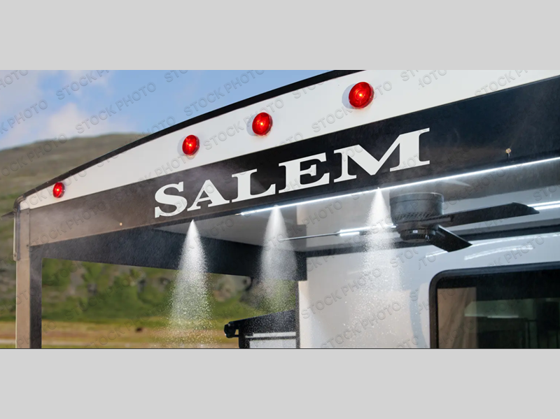 With any Salem Grand Villa destination trailer by Forest River, you can call home wherever you park it! There is a heated and enclosed Accessibelly for added protection in all seasons, LED "Blade Lighting" under the awning, Lippert On-The-Go ladder prep, plus many more exterior conveniences. Elegant curtain rods and curtains will have you feeling right at home, along with stainless steel kitchen appliances, stylish roller shades, and enhanced floating shelves for added storage. Each model includes a central vacuum with a sweep attachment to help keep your space tidy, a 60k on-demand tankless water heater for endless hot showers, a JBL 3-Zone media center, plus available options to further customize your trailer.