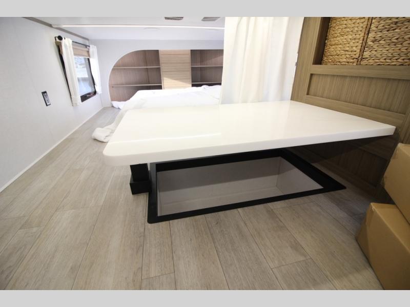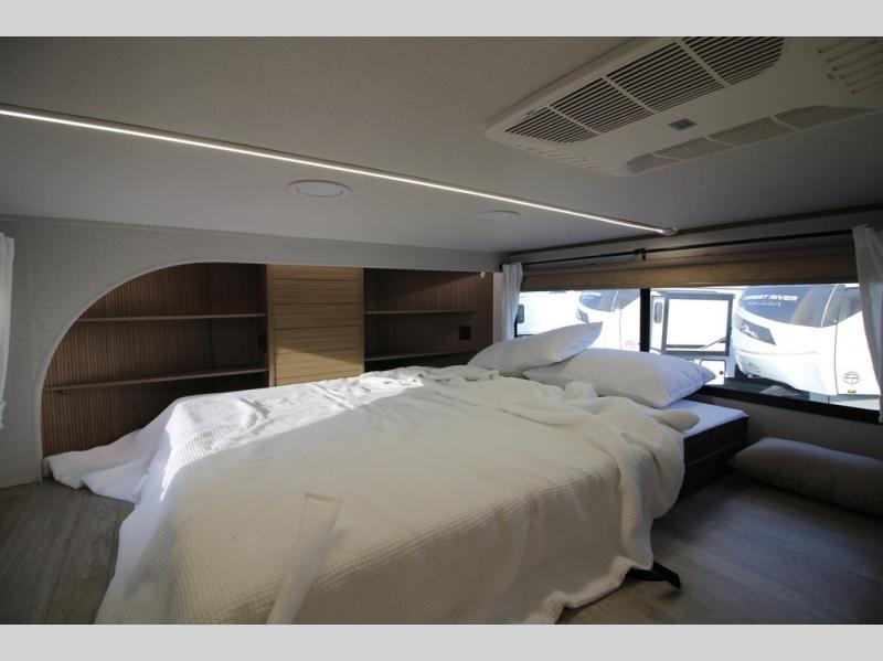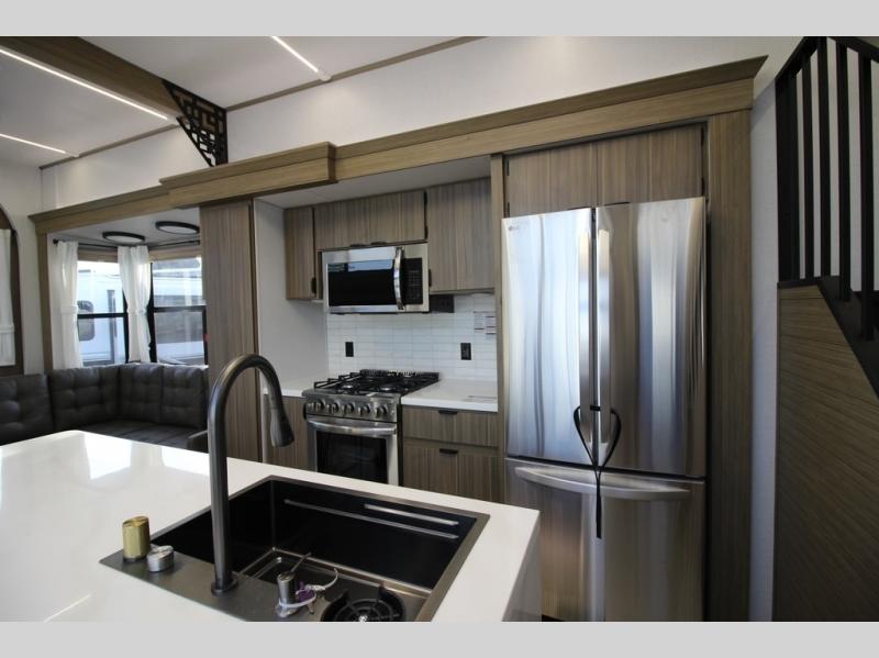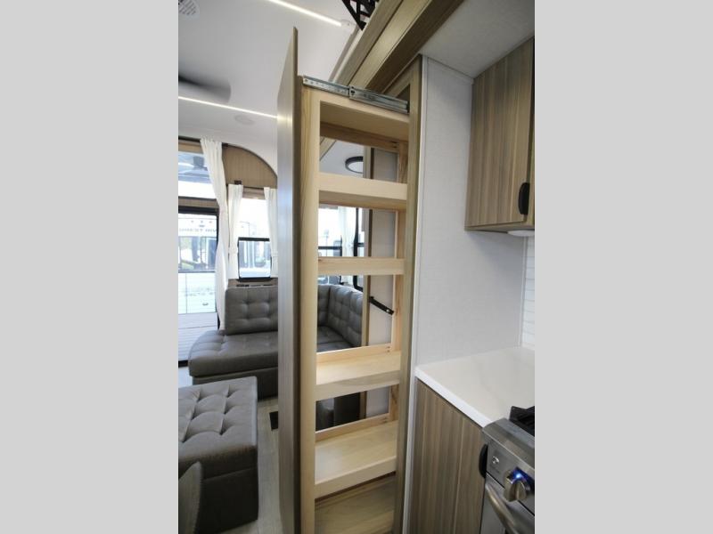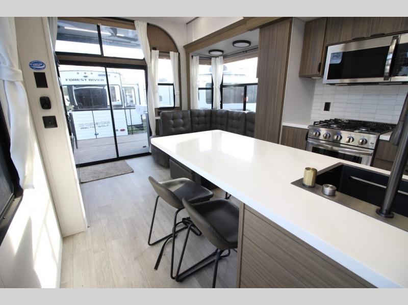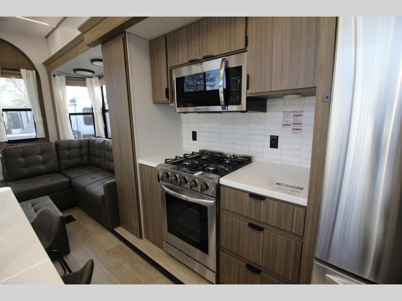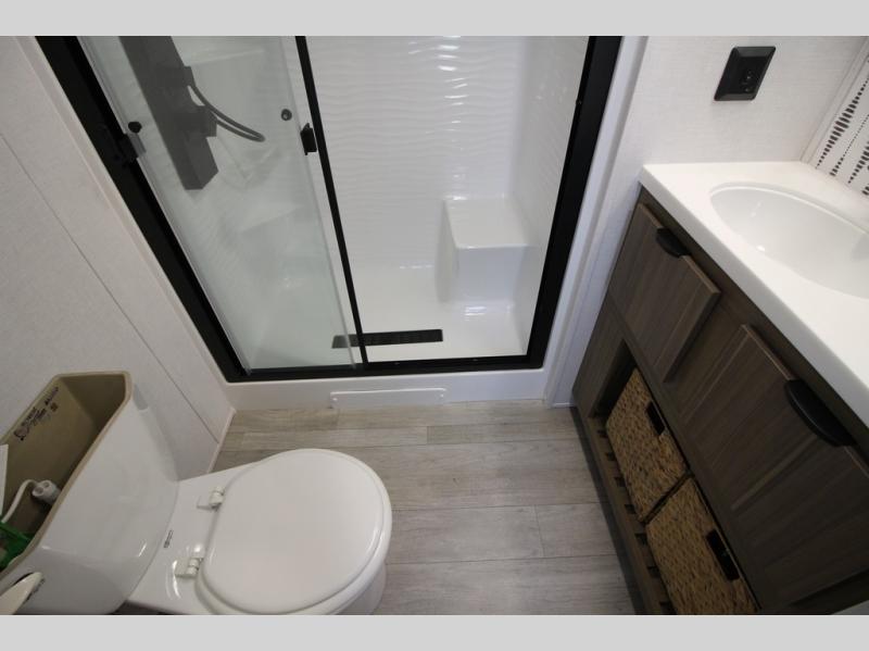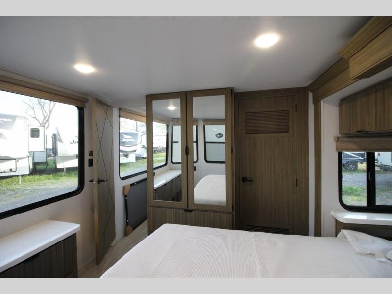 With any Salem Grand Villa destination trailer by Forest River, you can call home wherever you park it! There is a heated and enclosed Accessibelly for added protection in all seasons, LED "Blade Lighting" under the awning, Lippert On-The-Go ladder prep, plus many more exterior conveniences. Elegant curtain rods and curtains will have you feeling right at home, along with stainless steel kitchen appliances, stylish roller shades, and enhanced floating shelves for added storage. Each model includes a central vacuum with a sweep attachment to help keep your space tidy, a 60k on-demand tankless water heater for endless hot showers, a JBL 3-Zone media center, plus available options to further customize your trailer.