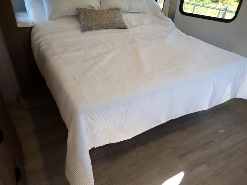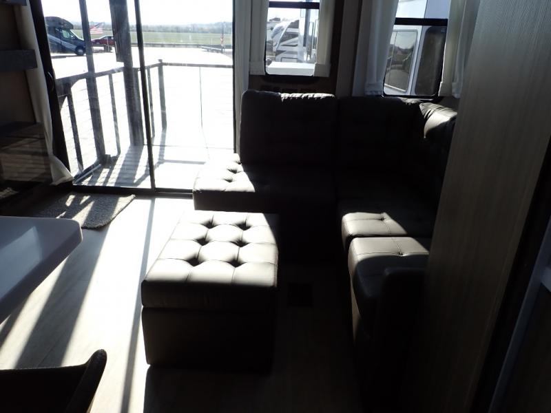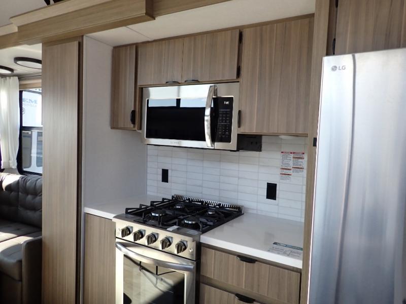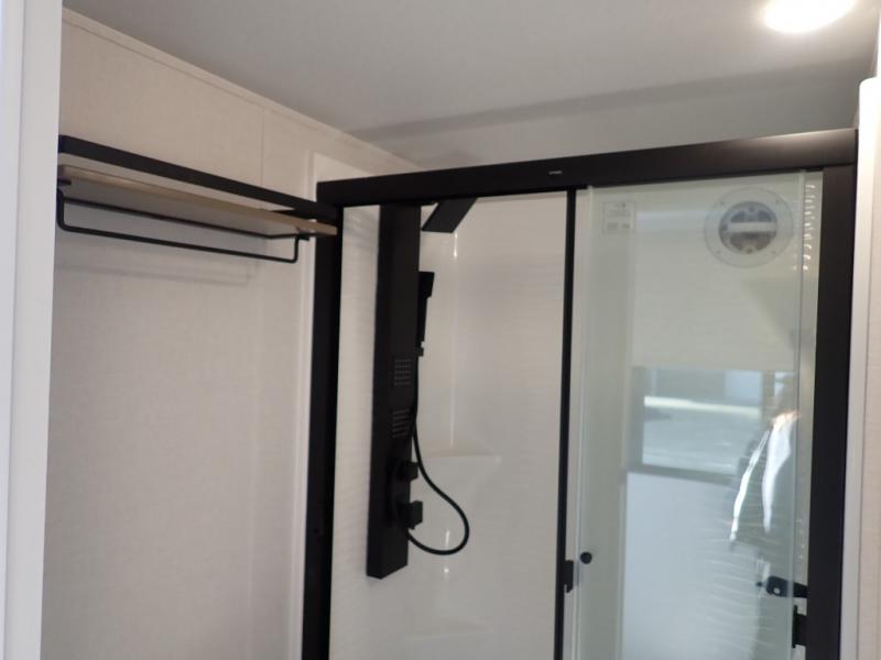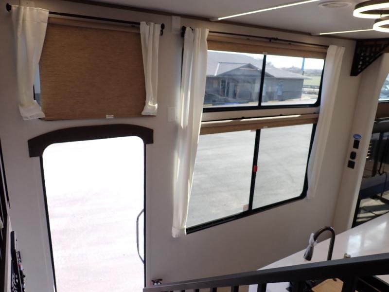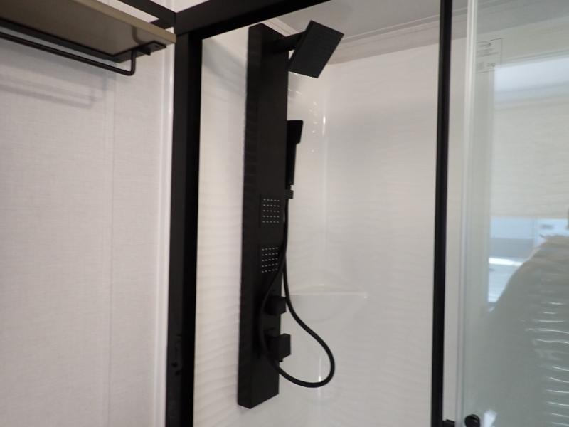 With any Salem Grand Villa destination trailer by Forest River, you can call home wherever you park it! There is a heated and enclosed Accessibelly for added protection in all seasons, LED "Blade Lighting" under the awning, Lippert On-The-Go ladder prep, plus many more exterior conveniences. Elegant curtain rods and curtains will have you feeling right at home, along with stainless steel kitchen appliances, stylish roller shades, and enhanced floating shelves for added storage. Each model includes a central vacuum with a sweep attachment to help keep your space tidy, a 60k on-demand tankless water heater for endless hot showers, a JBL 3-Zone media center, plus available options to further customize your trailer.