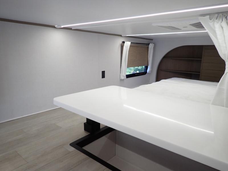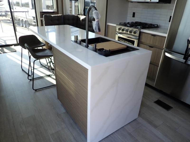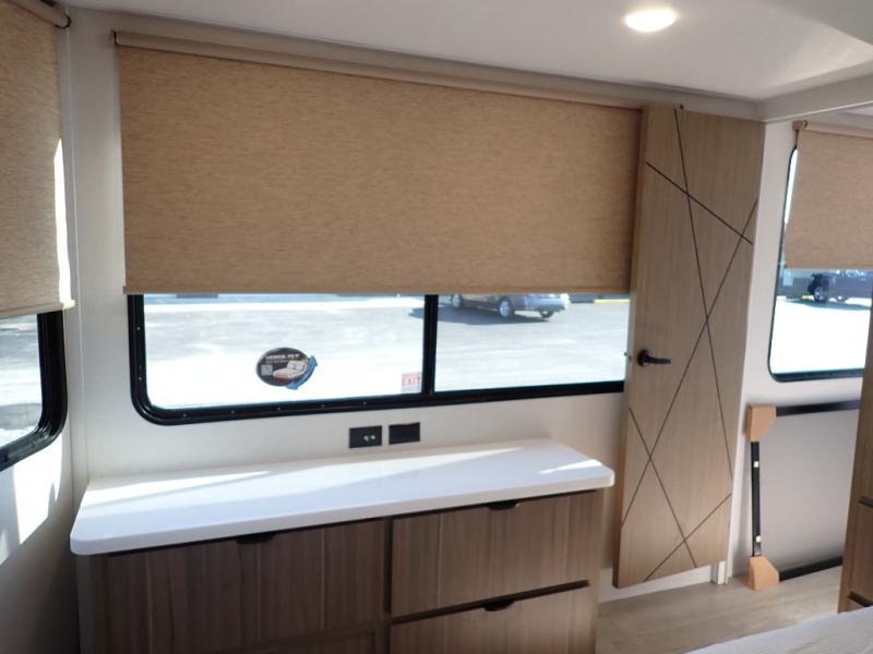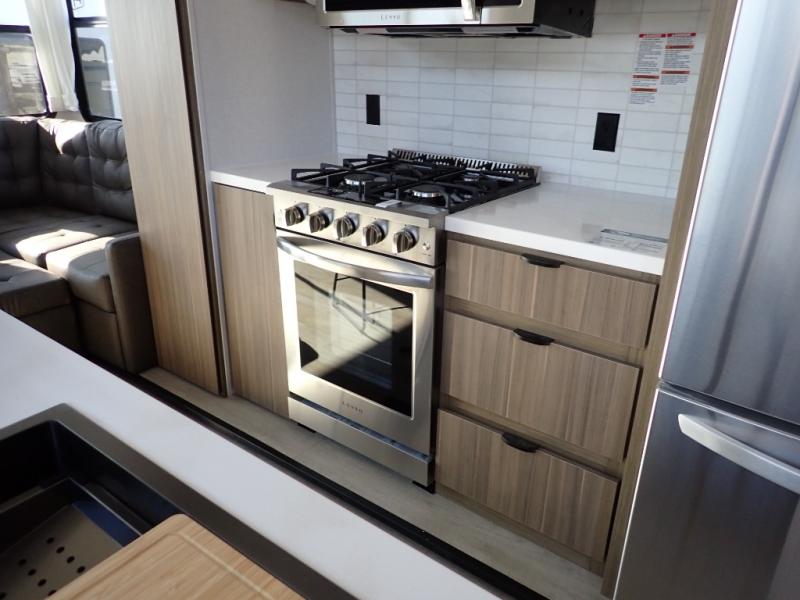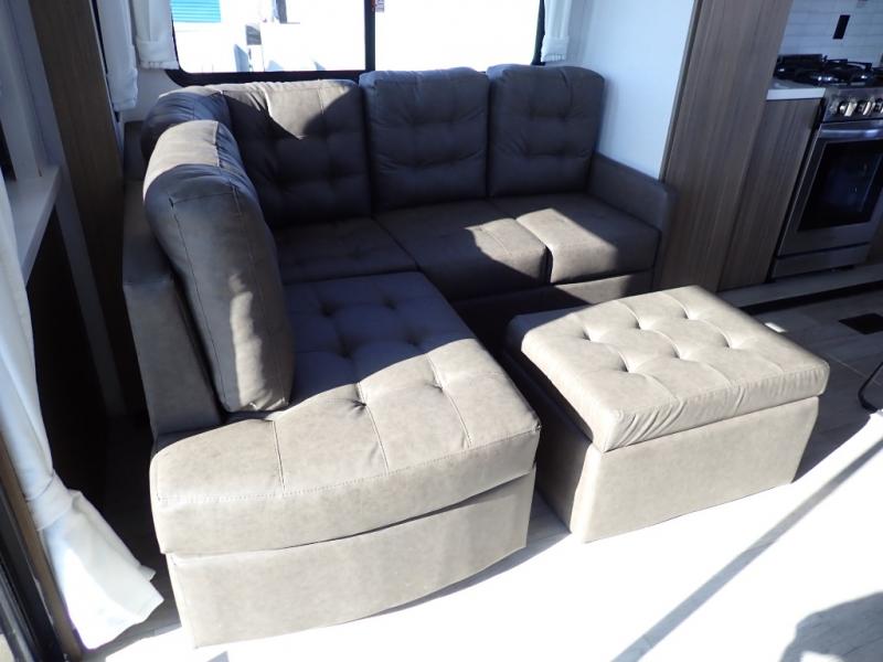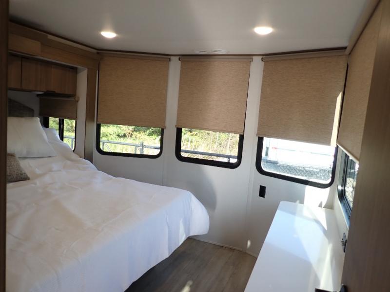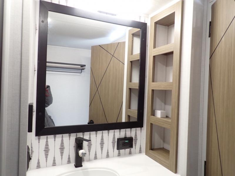 With any Salem Grand Villa destination trailer by Forest River, you can call home wherever you park it! There is a heated and enclosed Accessibelly for added protection in all seasons, LED "Blade Lighting" under the awning, Lippert On-The-Go ladder prep, plus many more exterior conveniences. Elegant curtain rods and curtains will have you feeling right at home, along with stainless steel kitchen appliances, stylish roller shades, and enhanced floating shelves for added storage. Each model includes a central vacuum with a sweep attachment to help keep your space tidy, a 60k on-demand tankless water heater for endless hot showers, a JBL 3-Zone media center, plus available options to further customize your trailer.