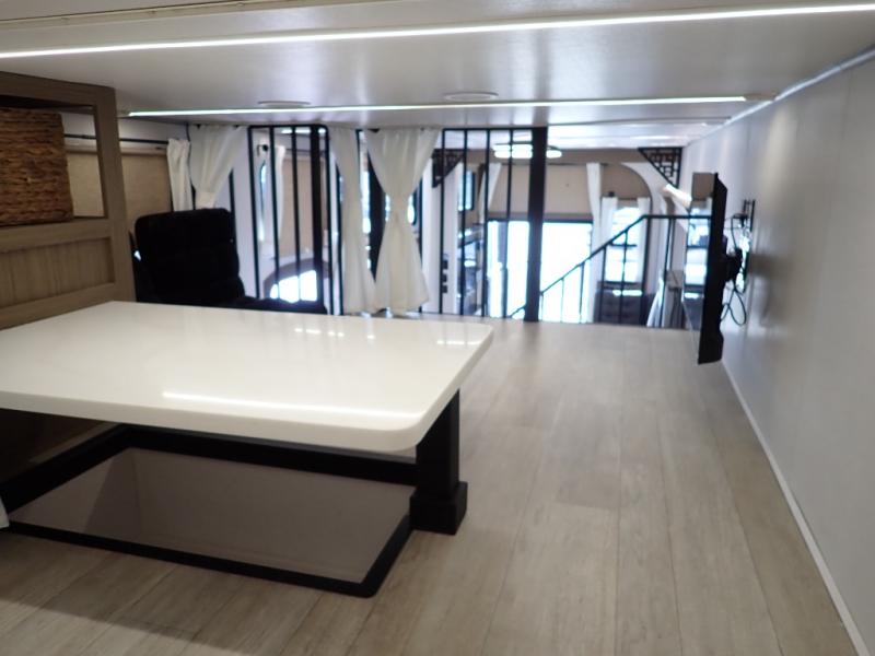 - Loft Area with Sleeping, TV and Lounge Chairs, and a Table for games/homework