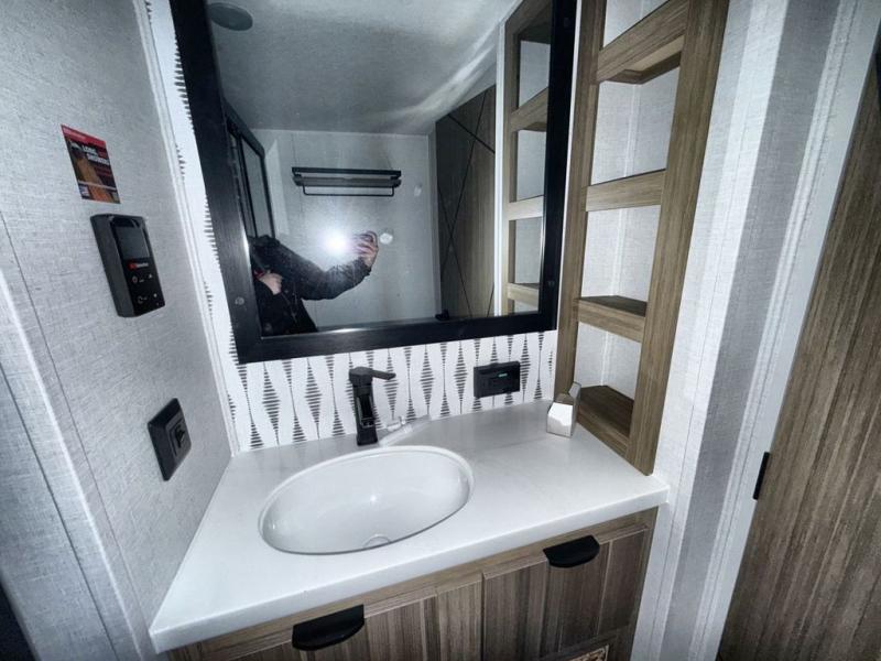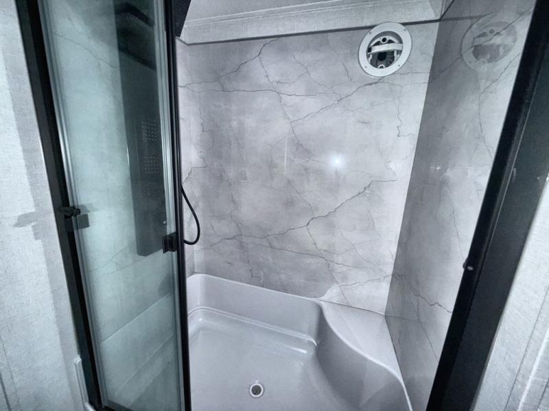 With any Salem Grand Villa destination trailer by Forest River, you can call home wherever you park it! There is a heated and enclosed Accessibelly for added protection in all seasons, LED "Blade Lighting" under the awning, Lippert On-The-Go ladder prep, plus many more exterior conveniences. Elegant curtain rods and curtains will have you feeling right at home, along with stainless steel kitchen appliances, stylish roller shades, and enhanced floating shelves for added storage. Each model includes a central vacuum with a sweep attachment to help keep your space tidy, a 60k on-demand tankless water heater for endless hot showers, a JBL 3-Zone media center, plus available options to further customize your trailer.