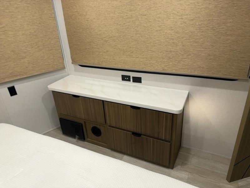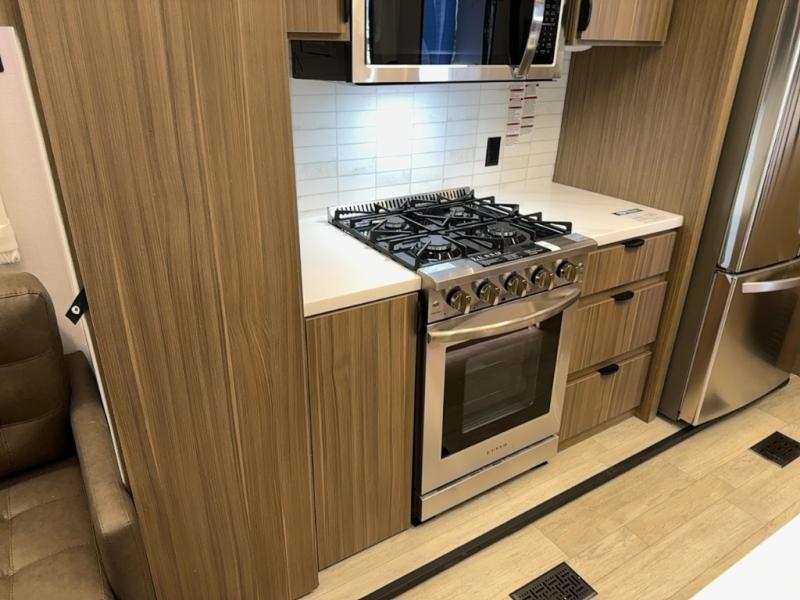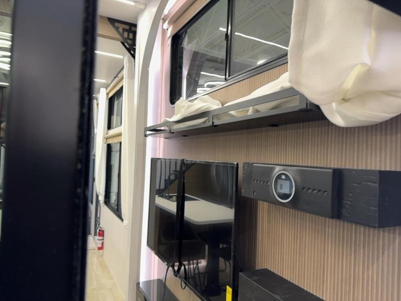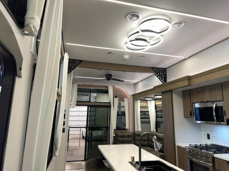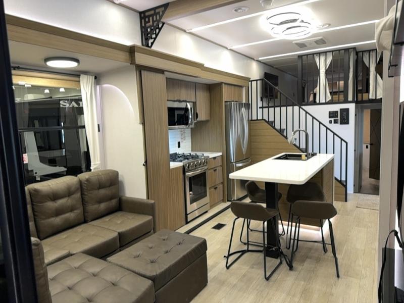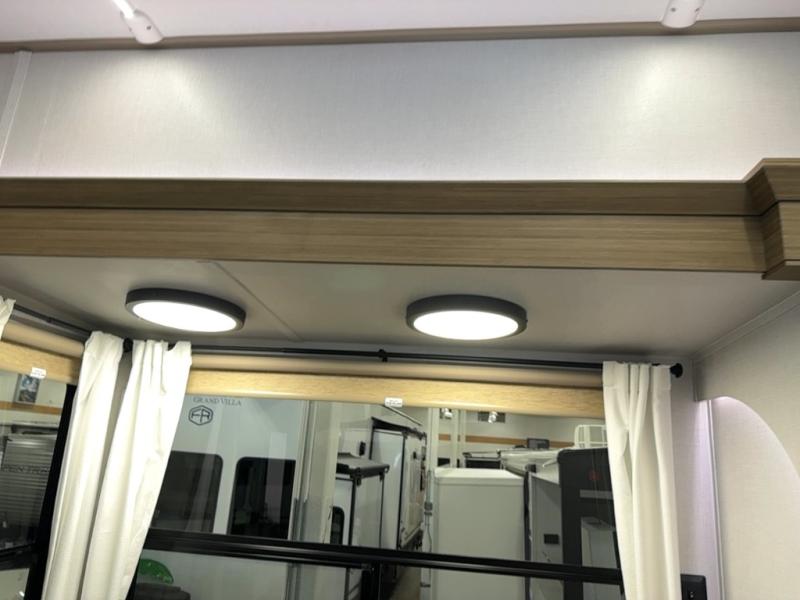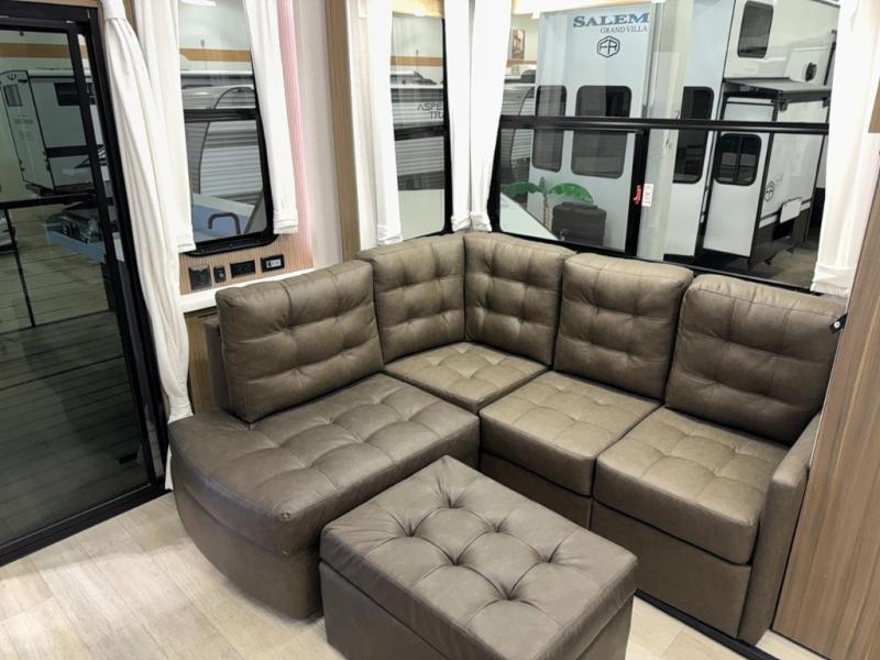 With any Salem Grand Villa destination trailer by Forest River, you can call home wherever you park it! There is a heated and enclosed Accessibelly for added protection in all seasons, LED "Blade Lighting" under the awning, Lippert On-The-Go ladder prep, plus many more exterior conveniences. Elegant curtain rods and curtains will have you feeling right at home, along with stainless steel kitchen appliances, stylish roller shades, and enhanced floating shelves for added storage. Each model includes a central vacuum with a sweep attachment to help keep your space tidy, a 60k on-demand tankless water heater for endless hot showers, a JBL 3-Zone media center, plus available options to further customize your trailer.