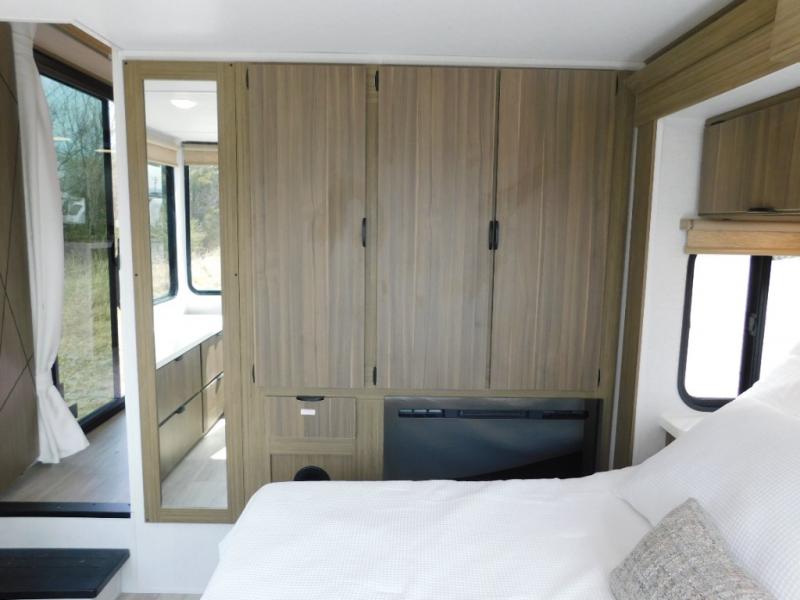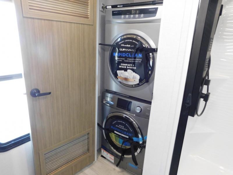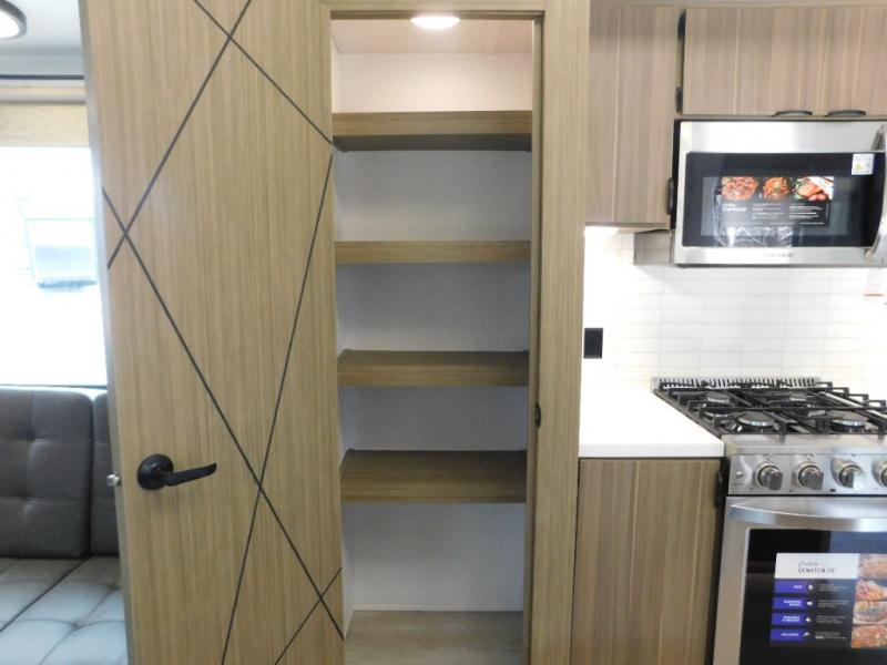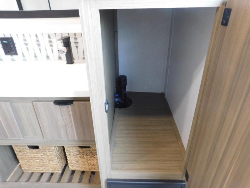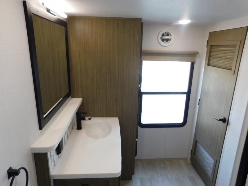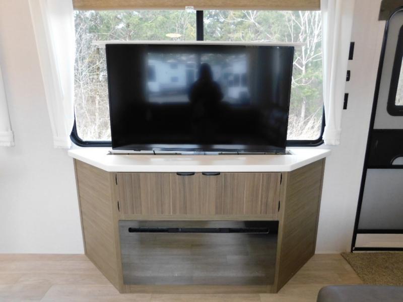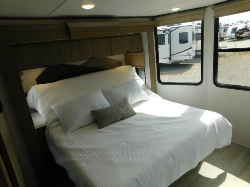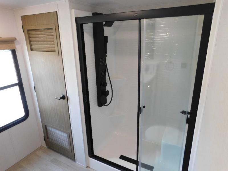 With any Salem Grand Villa destination trailer by Forest River, you can call home wherever you park it! There is a heated and enclosed Accessibelly for added protection in all seasons, LED "Blade Lighting" under the awning, Lippert On-The-Go ladder prep, plus many more exterior conveniences. Elegant curtain rods and curtains will have you feeling right at home, along with stainless steel kitchen appliances, stylish roller shades, and enhanced floating shelves for added storage. Each model includes a central vacuum with a sweep attachment to help keep your space tidy, a 60k on-demand tankless water heater for endless hot showers, a JBL 3-Zone media center, plus available options to further customize your trailer.