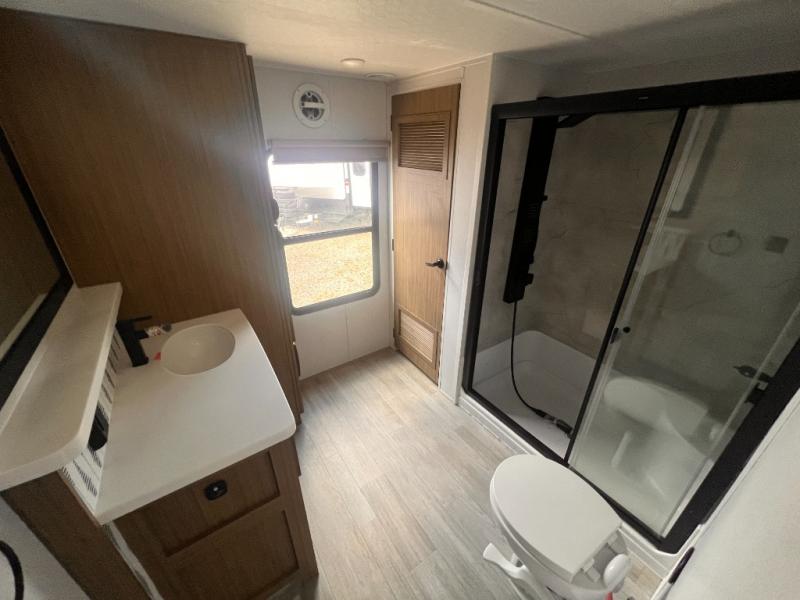 With any Salem Grand Villa destination trailer by Forest River, you can call home wherever you park it! There is a heated and enclosed Accessibelly for added protection in all seasons, LED "Blade Lighting" under the awning, Lippert On-The-Go ladder prep, plus many more exterior conveniences. Elegant curtain rods and curtains will have you feeling right at home, along with stainless steel kitchen appliances, stylish roller shades, and enhanced floating shelves for added storage. Each model includes a central vacuum with a sweep attachment to help keep your space tidy, a 60k on-demand tankless water heater for endless hot showers, a JBL 3-Zone media center, plus available options to further customize your trailer.