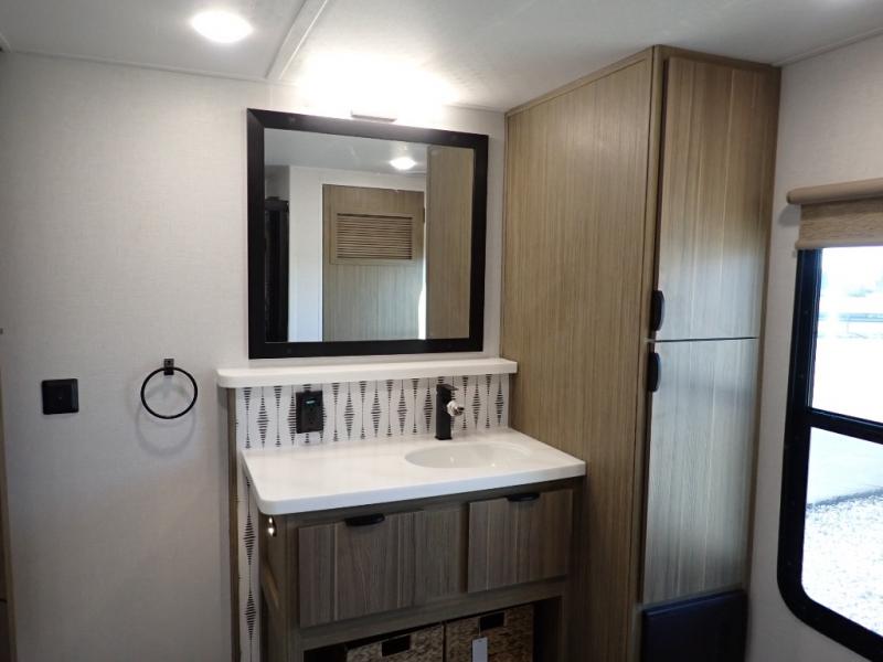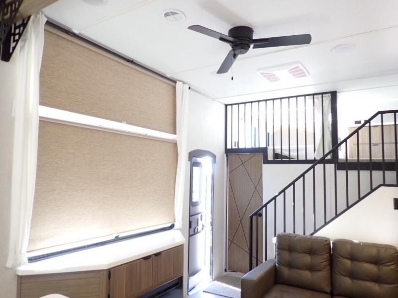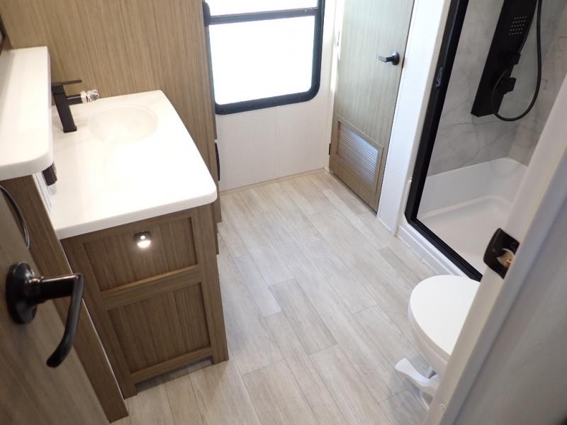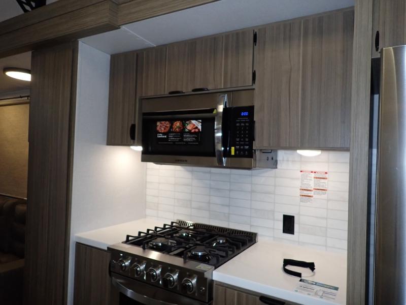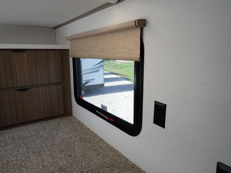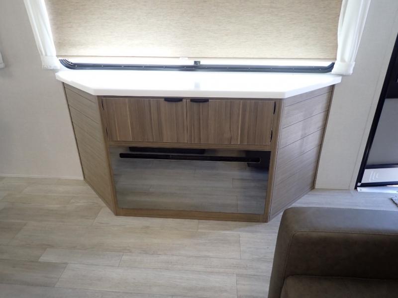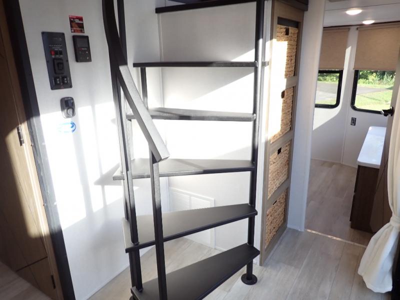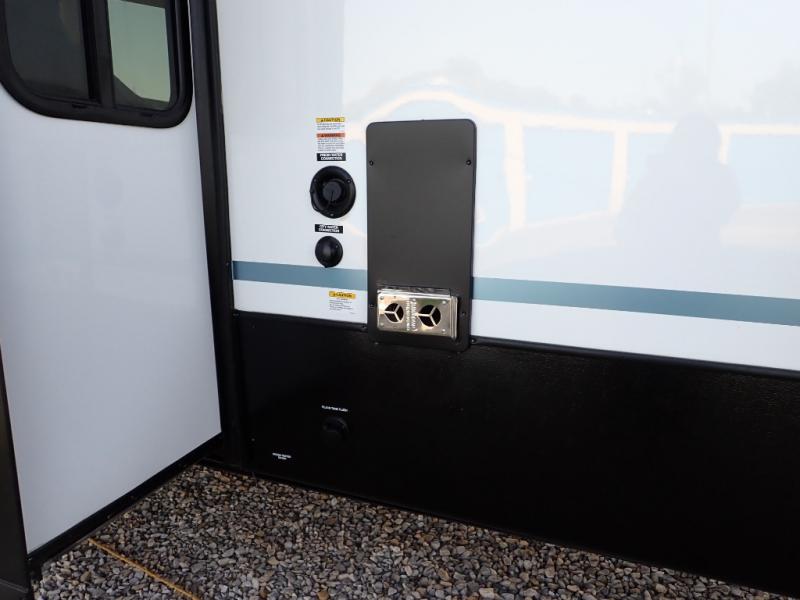 With any Salem Grand Villa destination trailer by Forest River, you can call home wherever you park it! There is a heated and enclosed Accessibelly for added protection in all seasons, LED "Blade Lighting" under the awning, Lippert On-The-Go ladder prep, plus many more exterior conveniences. Elegant curtain rods and curtains will have you feeling right at home, along with stainless steel kitchen appliances, stylish roller shades, and enhanced floating shelves for added storage. Each model includes a central vacuum with a sweep attachment to help keep your space tidy, a 60k on-demand tankless water heater for endless hot showers, a JBL 3-Zone media center, plus available options to further customize your trailer.
