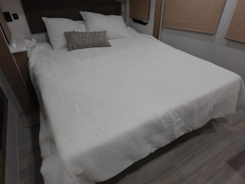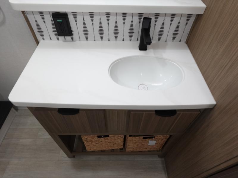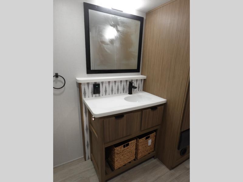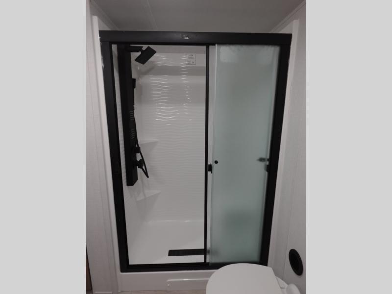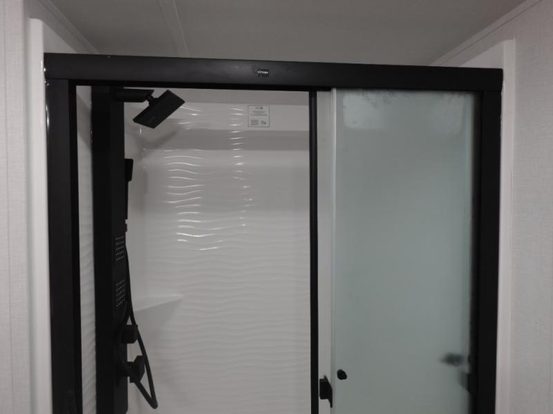 With any Salem Grand Villa destination trailer by Forest River, you can call home wherever you park it! There is a heated and enclosed Accessibelly for added protection in all seasons, LED "Blade Lighting" under the awning, Lippert On-The-Go ladder prep, plus many more exterior conveniences. Elegant curtain rods and curtains will have you feeling right at home, along with stainless steel kitchen appliances, stylish roller shades, and enhanced floating shelves for added storage. Each model includes a central vacuum with a sweep attachment to help keep your space tidy, a 60k on-demand tankless water heater for endless hot showers, a JBL 3-Zone media center, plus more.