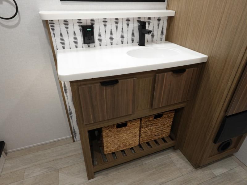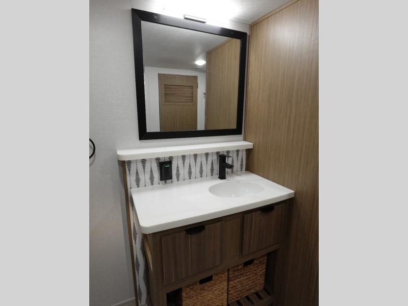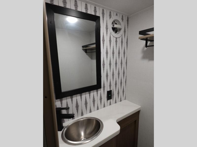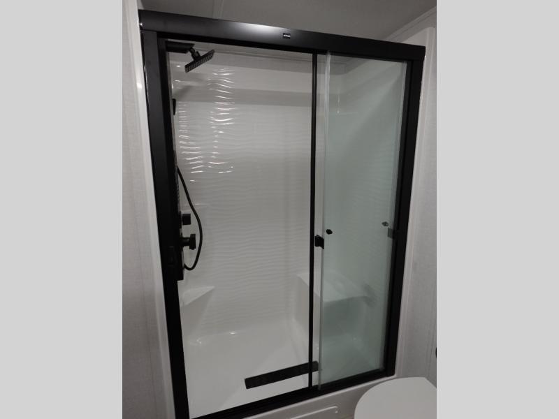 With any Salem Grand Villa destination trailer by Forest River, you can call home wherever you park it! There is a heated and enclosed Accessibelly for added protection in all seasons, LED "Blade Lighting" under the awning, Lippert On-The-Go ladder prep, plus many more exterior conveniences. Elegant curtain rods and curtains will have you feeling right at home, along with stainless steel kitchen appliances, stylish roller shades, and enhanced floating shelves for added storage. Each model includes a central vacuum with a sweep attachment to help keep your space tidy, a 60k on-demand tankless water heater for endless hot showers, a JBL 3-Zone media center, plus more.