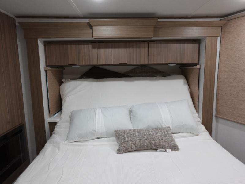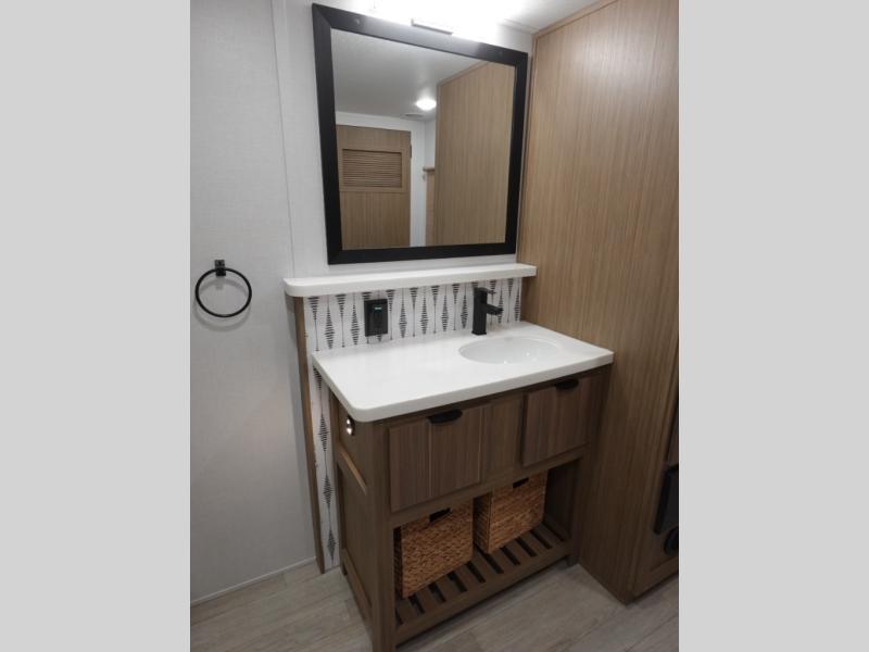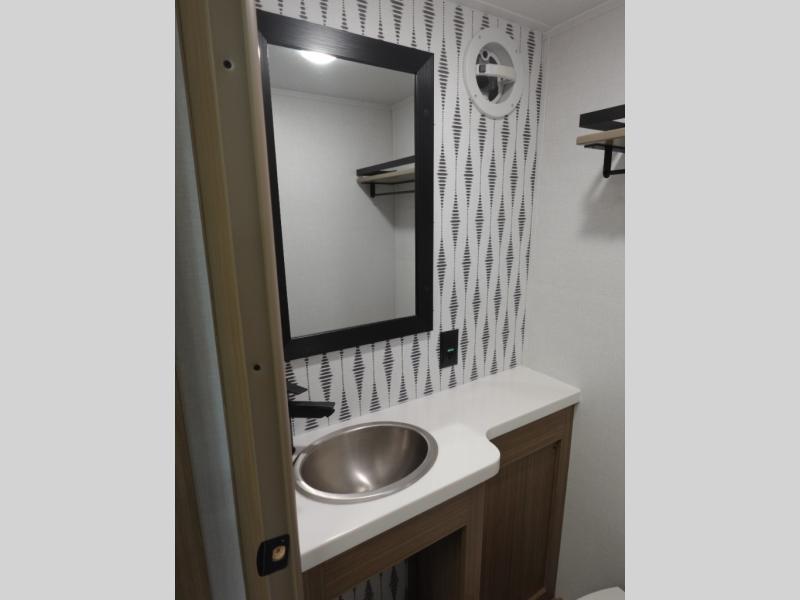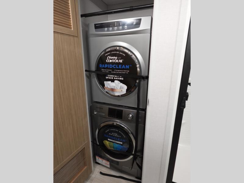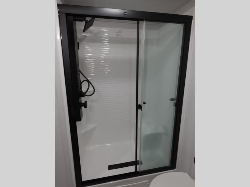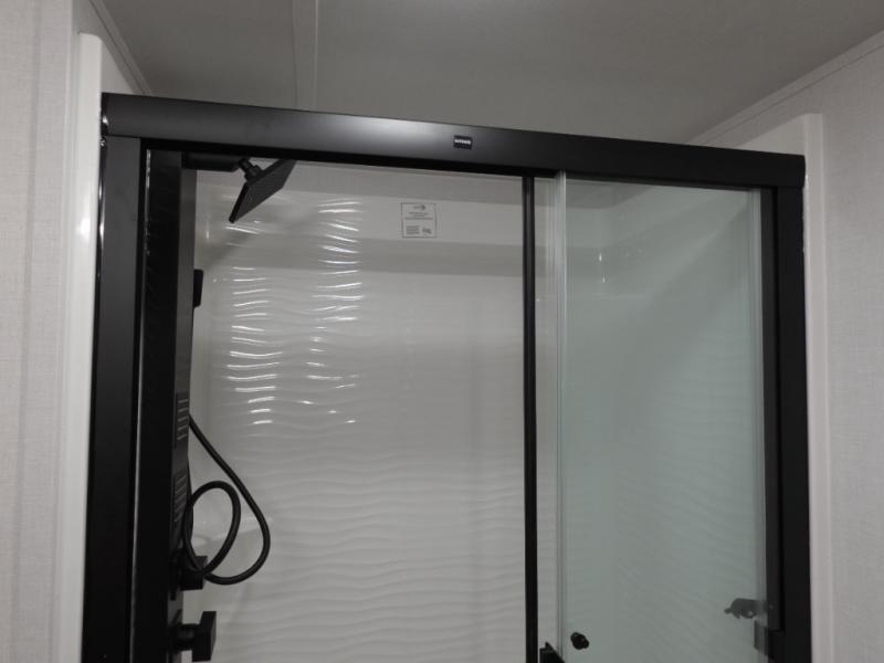 With any Salem Grand Villa destination trailer by Forest River, you can call home wherever you park it! There is a heated and enclosed Accessibelly for added protection in all seasons, LED "Blade Lighting" under the awning, Lippert On-The-Go ladder prep, plus many more exterior conveniences. Elegant curtain rods and curtains will have you feeling right at home, along with stainless steel kitchen appliances, stylish roller shades, and enhanced floating shelves for added storage. Each model includes a central vacuum with a sweep attachment to help keep your space tidy, a 60k on-demand tankless water heater for endless hot showers, a JBL 3-Zone media center, plus more.