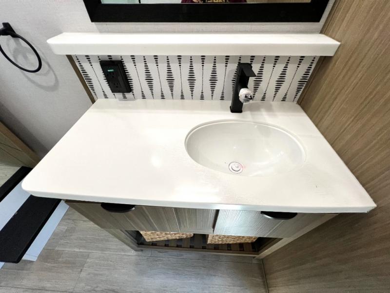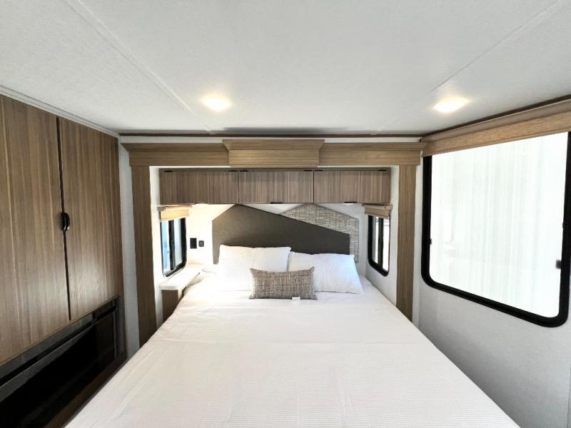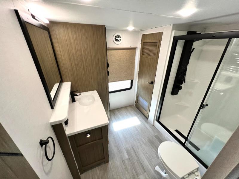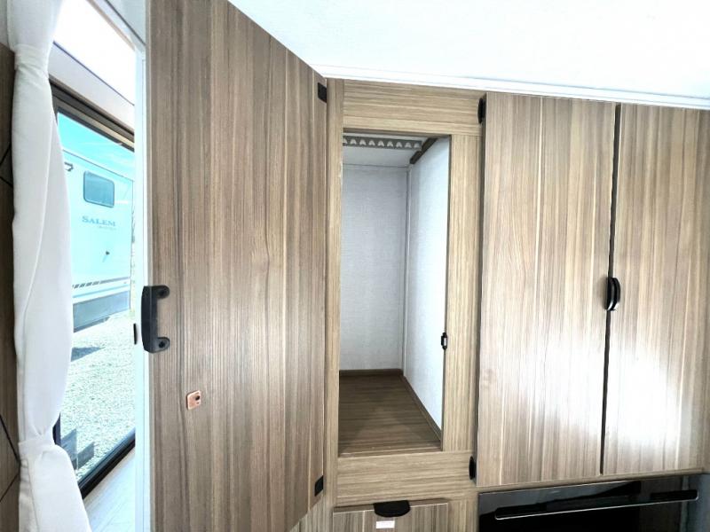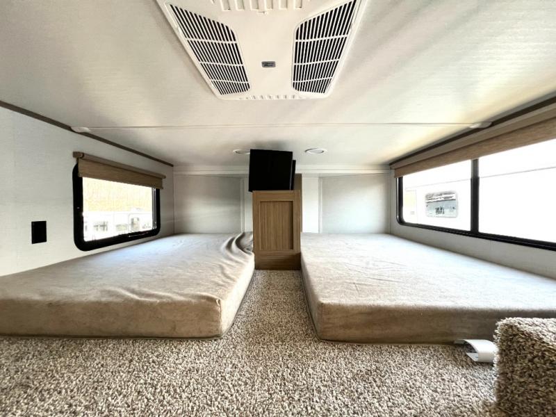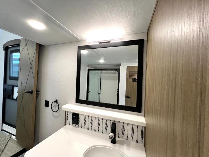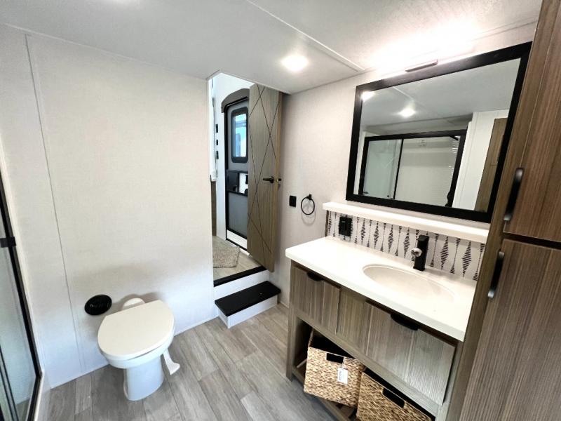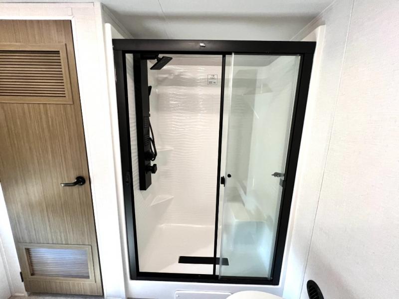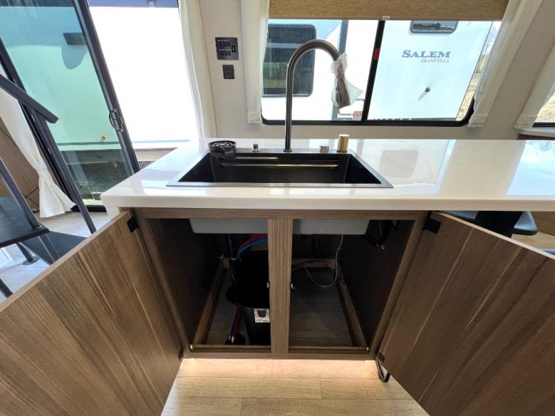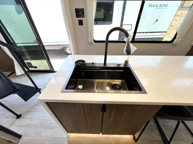 With any Salem Grand Villa destination trailer by Forest River, you can call home wherever you park it! There is a heated and enclosed Accessibelly for added protection in all seasons, LED "Blade Lighting" under the awning, Lippert On-The-Go ladder prep, plus many more exterior conveniences. Elegant curtain rods and curtains will have you feeling right at home, along with stainless steel kitchen appliances, stylish roller shades, and enhanced floating shelves for added storage. Each model includes a central vacuum with a sweep attachment to help keep your space tidy, a 60k on-demand tankless water heater for endless hot showers, a JBL 3-Zone media center, plus available options to further customize your trailer.