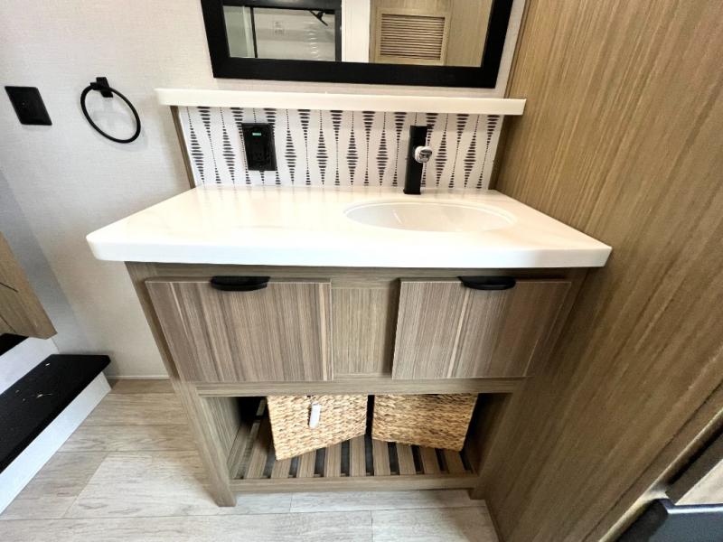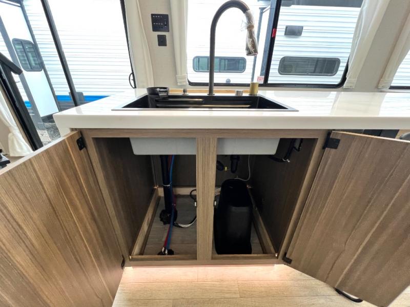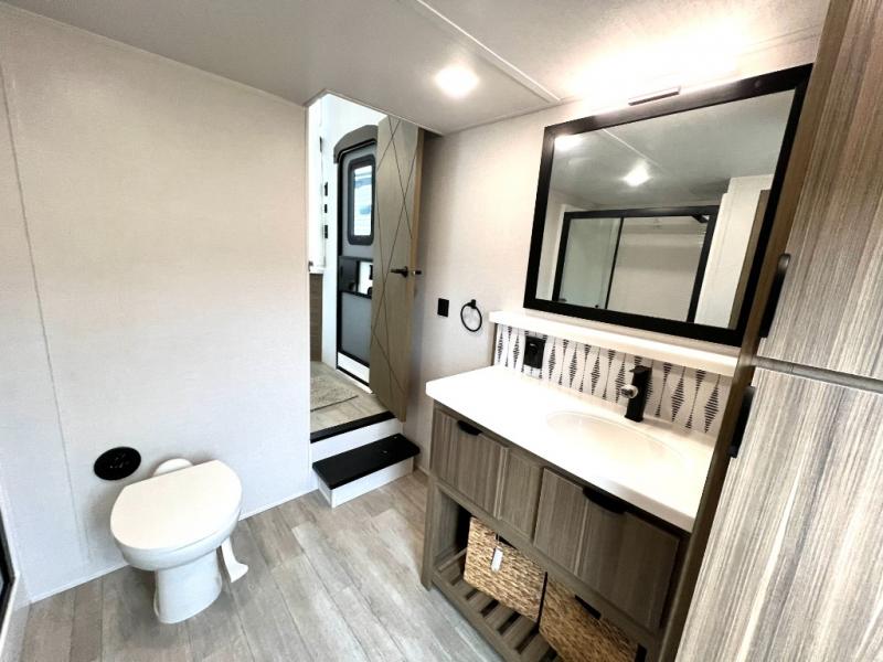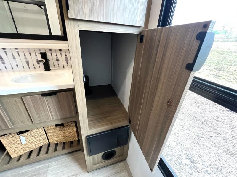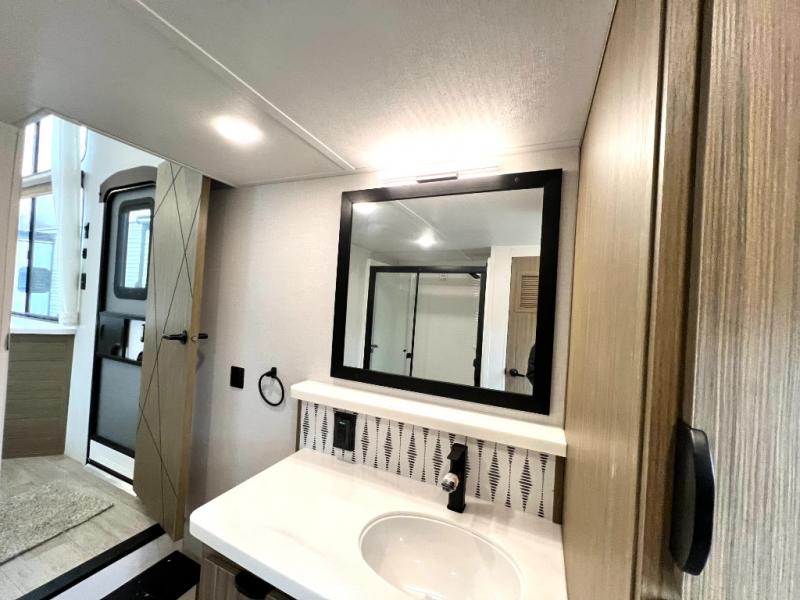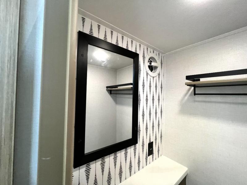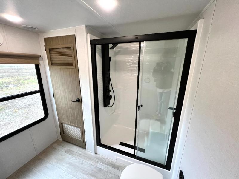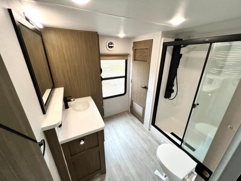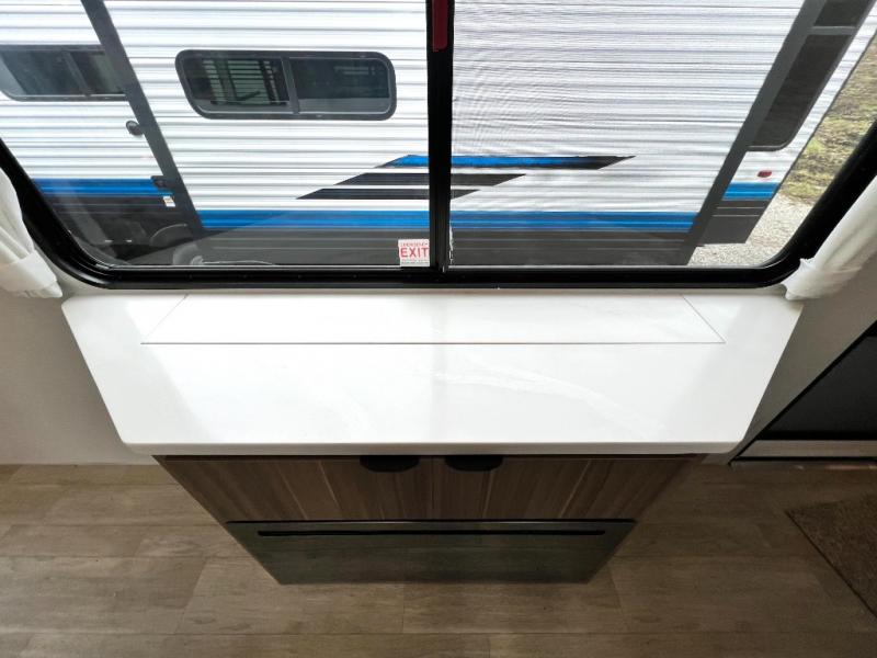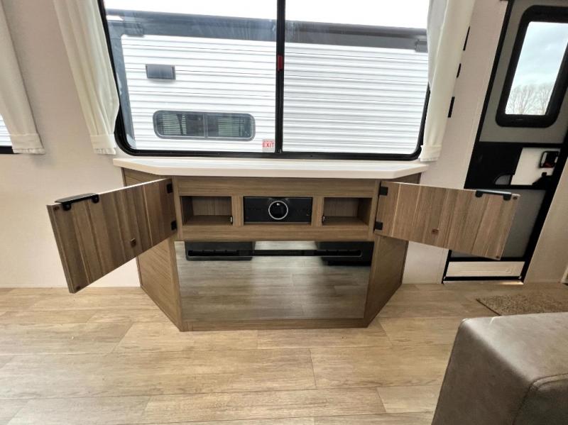 With any Salem Grand Villa destination trailer by Forest River, you can call home wherever you park it! There is a heated and enclosed Accessibelly for added protection in all seasons, LED "Blade Lighting" under the awning, Lippert On-The-Go ladder prep, plus many more exterior conveniences. Elegant curtain rods and curtains will have you feeling right at home, along with stainless steel kitchen appliances, stylish roller shades, and enhanced floating shelves for added storage. Each model includes a central vacuum with a sweep attachment to help keep your space tidy, a 60k on-demand tankless water heater for endless hot showers, a JBL 3-Zone media center, plus available options to further customize your trailer.