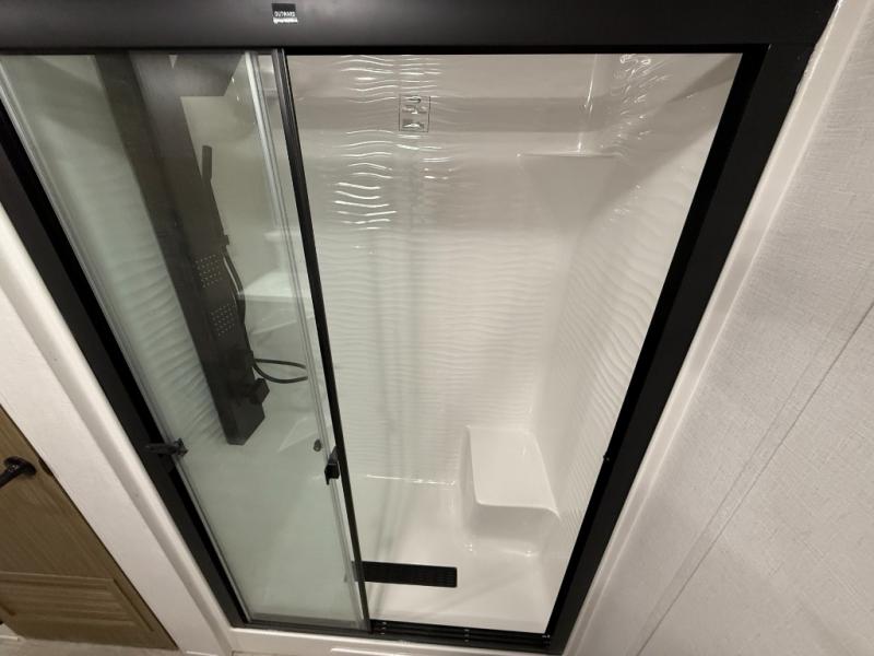 With any Salem Grand Villa destination trailer by Forest River, you can call home wherever you park it! There is a heated and enclosed Accessibelly for added protection in all seasons, LED "Blade Lighting" under the awning, Lippert On-The-Go ladder prep, plus many more exterior conveniences. Elegant curtain rods and curtains will have you feeling right at home, along with stainless steel kitchen appliances, stylish roller shades, and enhanced floating shelves for added storage. Each model includes a central vacuum with a sweep attachment to help keep your space tidy, a 60k on-demand tankless water heater for endless hot showers, a JBL 3-Zone media center, plus available options to further customize your trailer.
