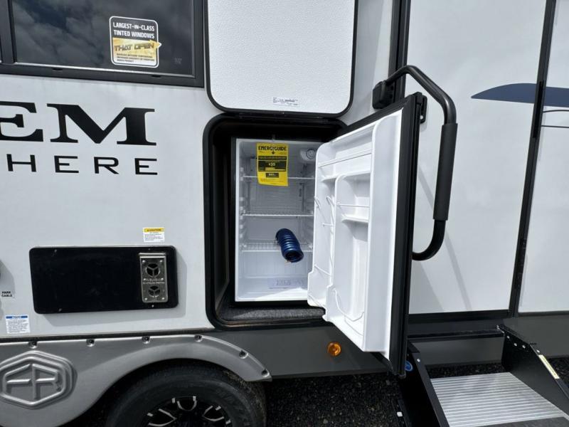 The Salem Hemisphere fifth wheels and travel trailers by Forest River are packed with features, while still being value-minded! Each model is constructed with laminated "Aluma Frame" sidewalls and floor with block foam insulation plus full length barreled ceilings for added head space. There are LED awning, marker and tail lights outside, along with an extra large pass-thru storage with slam latch baggage doors, plus solar prep and Lippert On-The-Go ladder prep. The 60K on-demand tankless water heater will provide endless hot showers, and the JBL sound system includes a head unit plus interior and exterior speakers to keep the party going. There are also many interior comforts found throughout that will make you feel right at home!