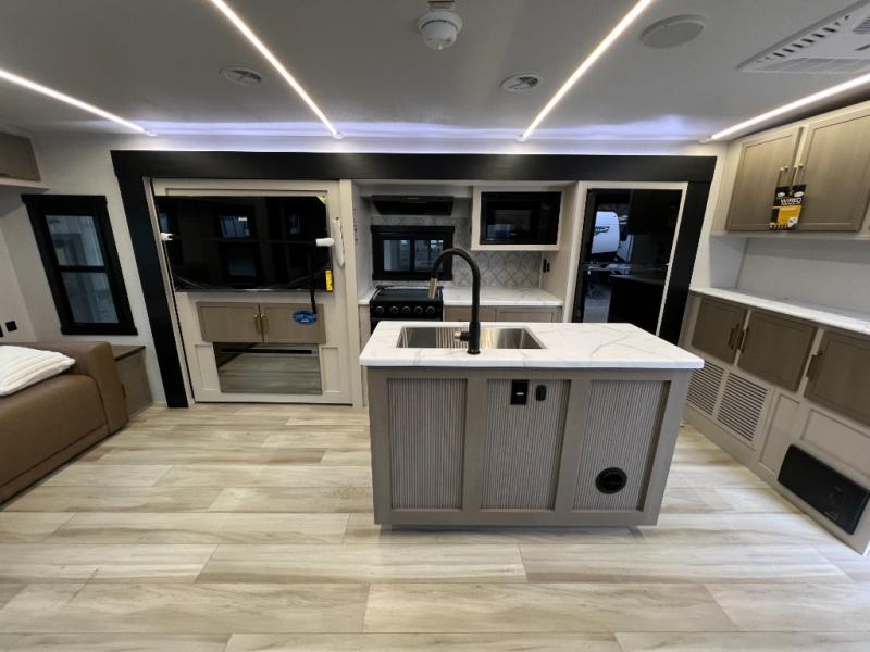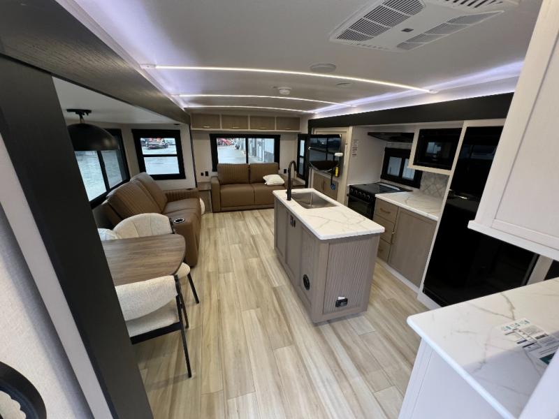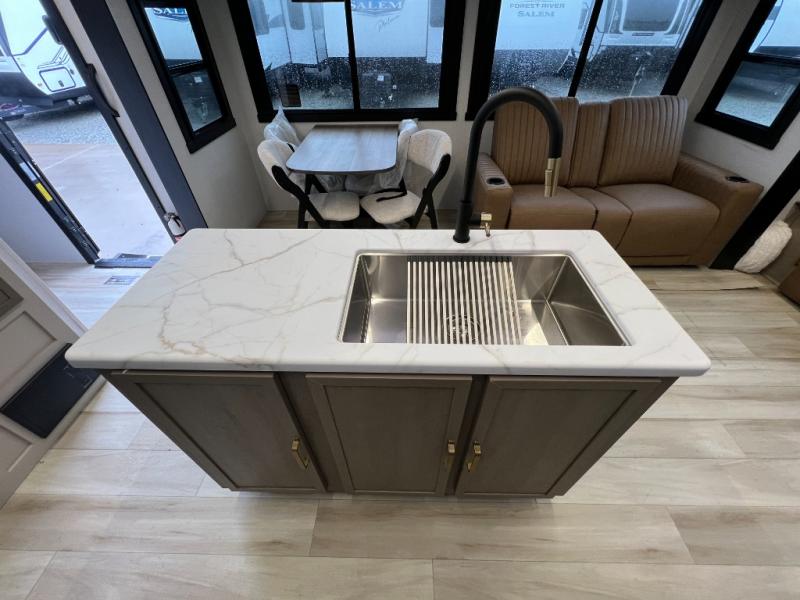 The Salem Hemisphere fifth wheels and travel trailers by Forest River are packed with features, while still being value-minded! Each model is constructed with laminated "Aluma Frame" sidewalls and floor with block foam insulation plus full length barreled ceilings for added head space. There are LED awning, marker and tail lights outside, along with an extra large pass-thru storage with slam latch baggage doors, plus solar prep and Lippert On-The-Go ladder prep. The 60K on-demand tankless water heater will provide endless hot showers, and the JBL sound system includes a head unit plus interior and exterior speakers to keep the party going. There are also many interior comforts found throughout that will make you feel right at home!